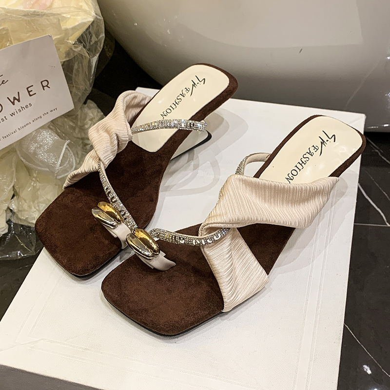 Главная страница > Французские босоножки на высоком каблуке со стразами для женщин, элитный летний новый стиль, женственный стиль, тонкие ремешки, тапочки с открытым носком и квадратным носком, модные