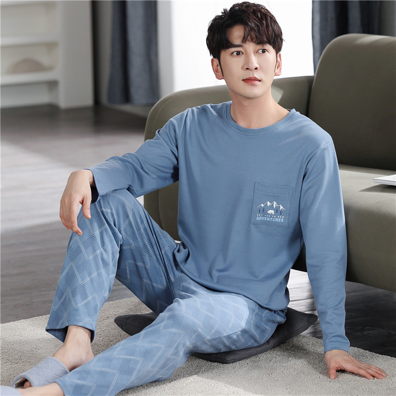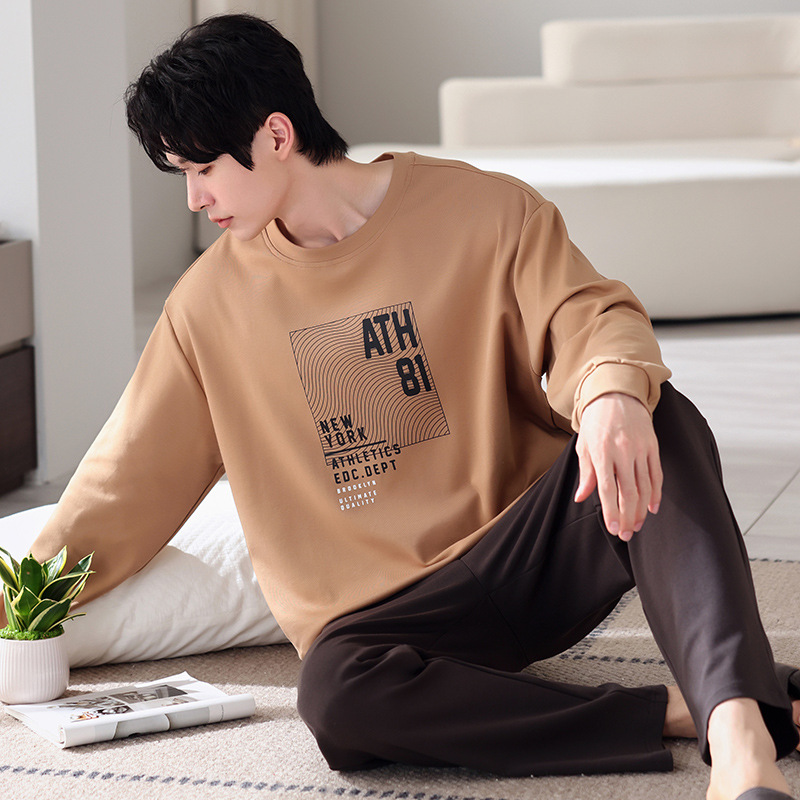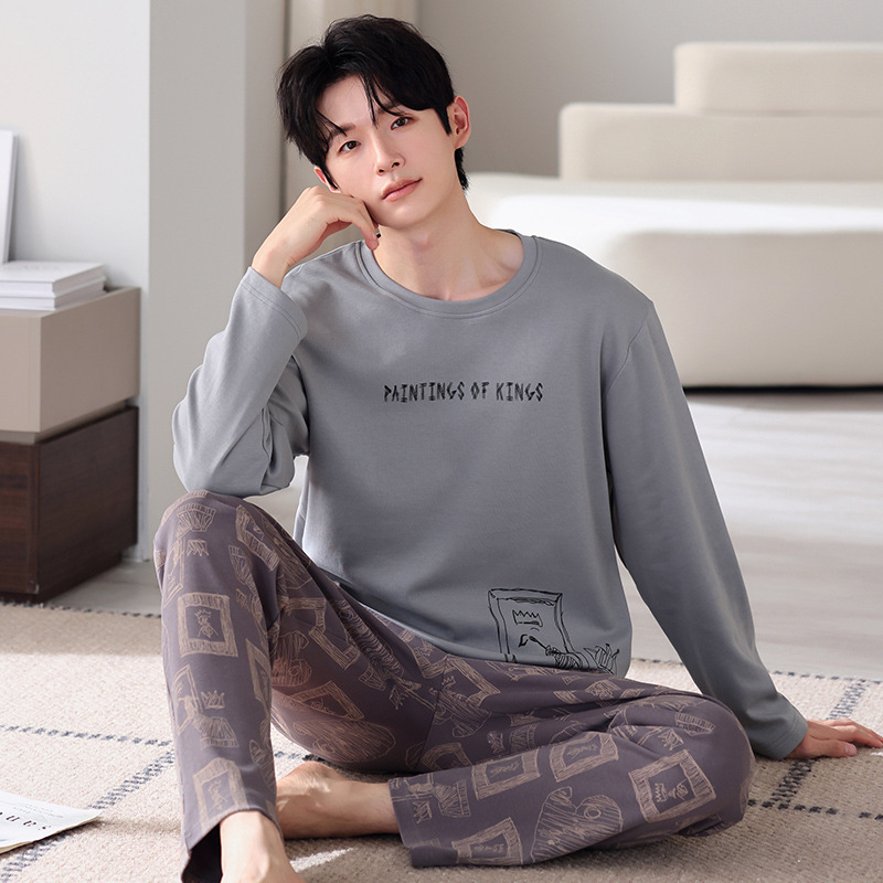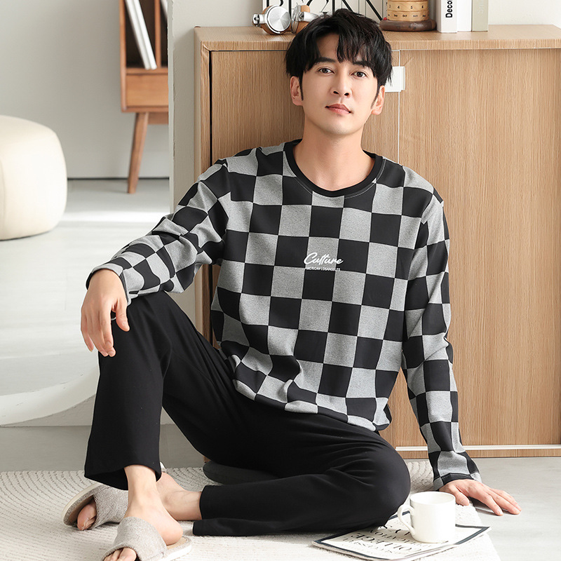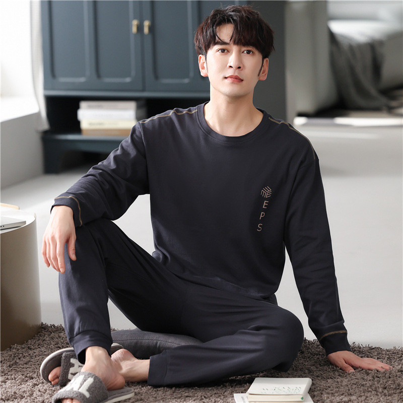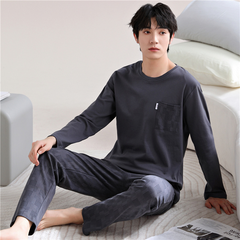 Главная страница > Мужская пижама весна-осень 2025: новая модель, чистый хлопок, с длинным рукавом, пуловер, большие размеры, осенне-зимняя домашняя одежда