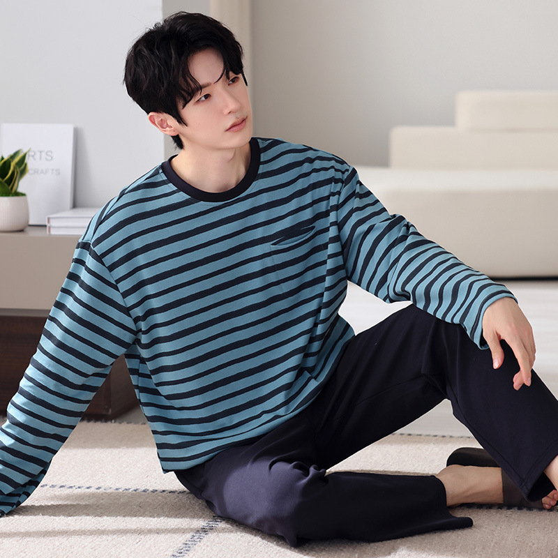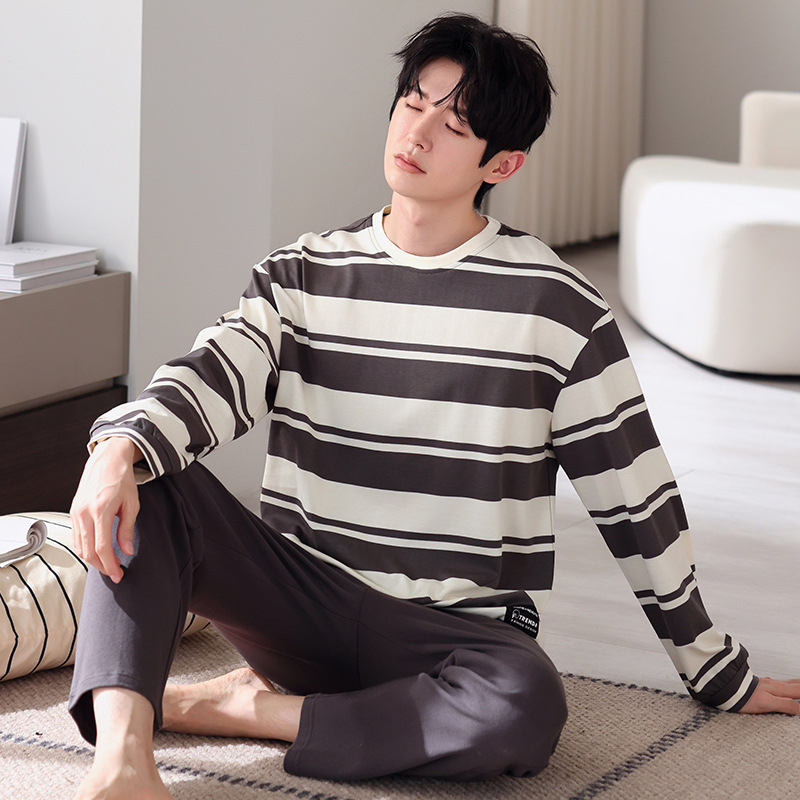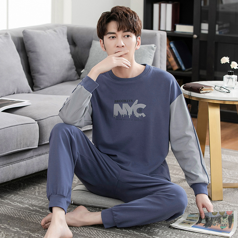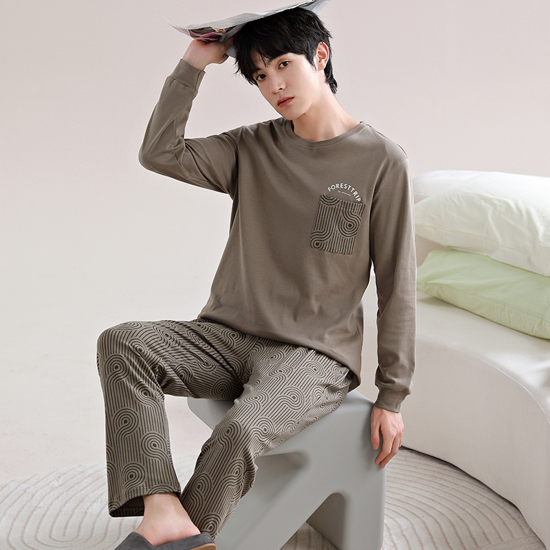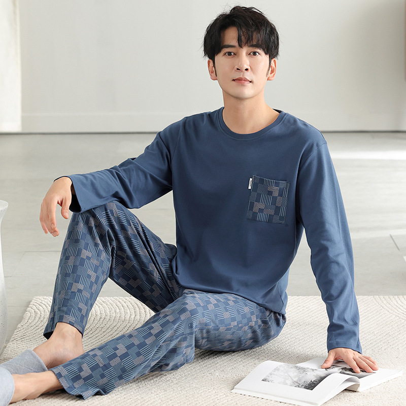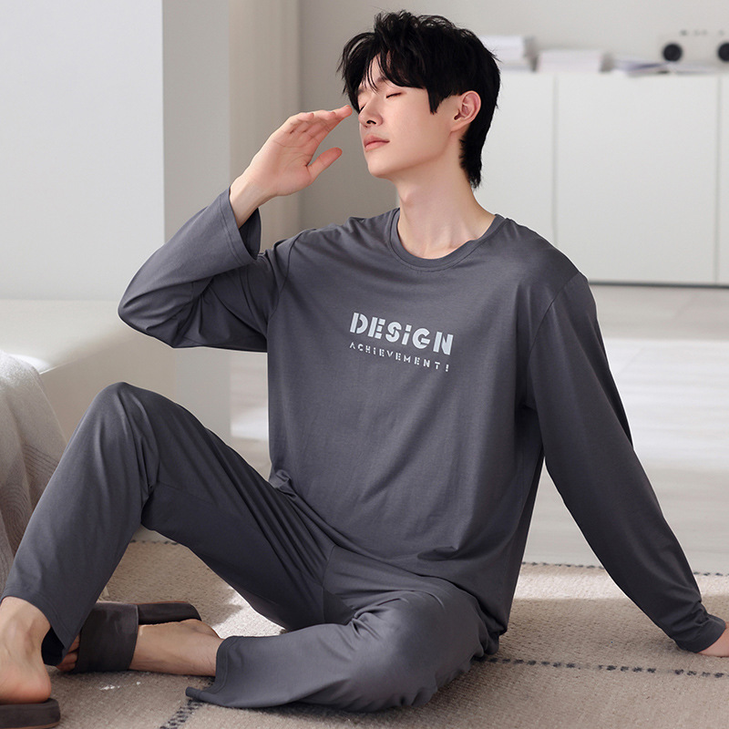 Главная страница > Мужская пижама весна-осень 2025: новая модель, чистый хлопок, с длинным рукавом, пуловер, большие размеры, осенне-зимняя домашняя одежда