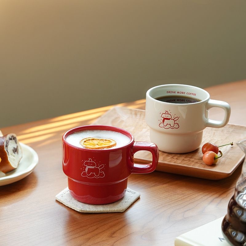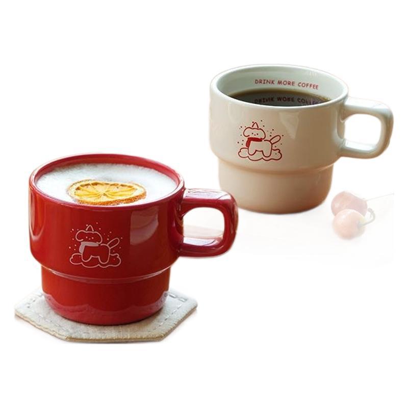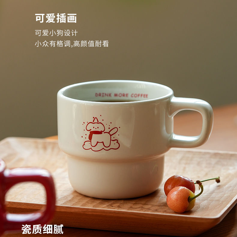 Мультфильм ins ветер милый чай с молоком щенок иллюстрация керамическая кружка пара подружек кофе чашка завтрак молоко чашка