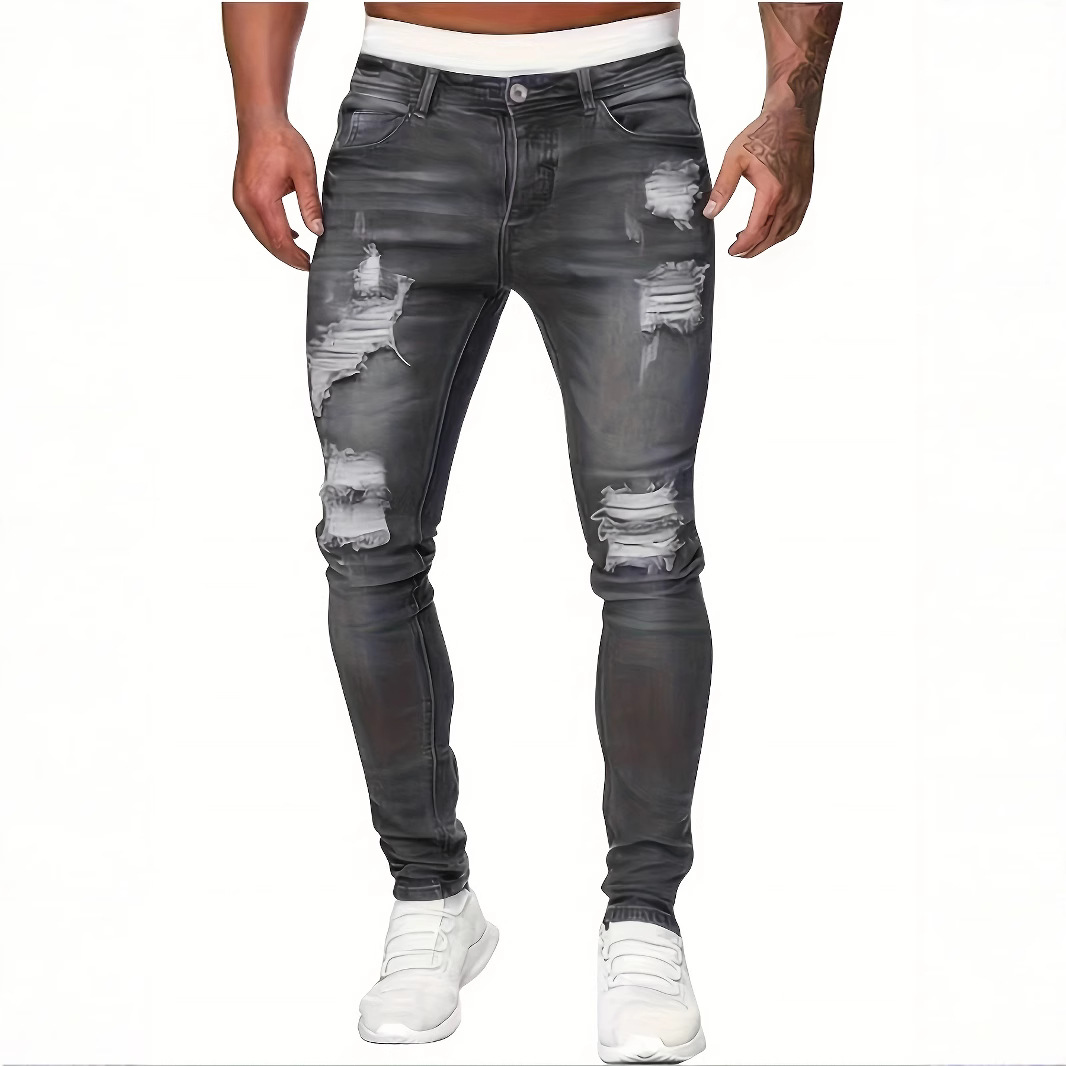 Внешняя торговля новый wish европейские и американские мужские брюки дыры, отточенные белые узкие джинсовые брюки модные маленькие брюки для мужчин