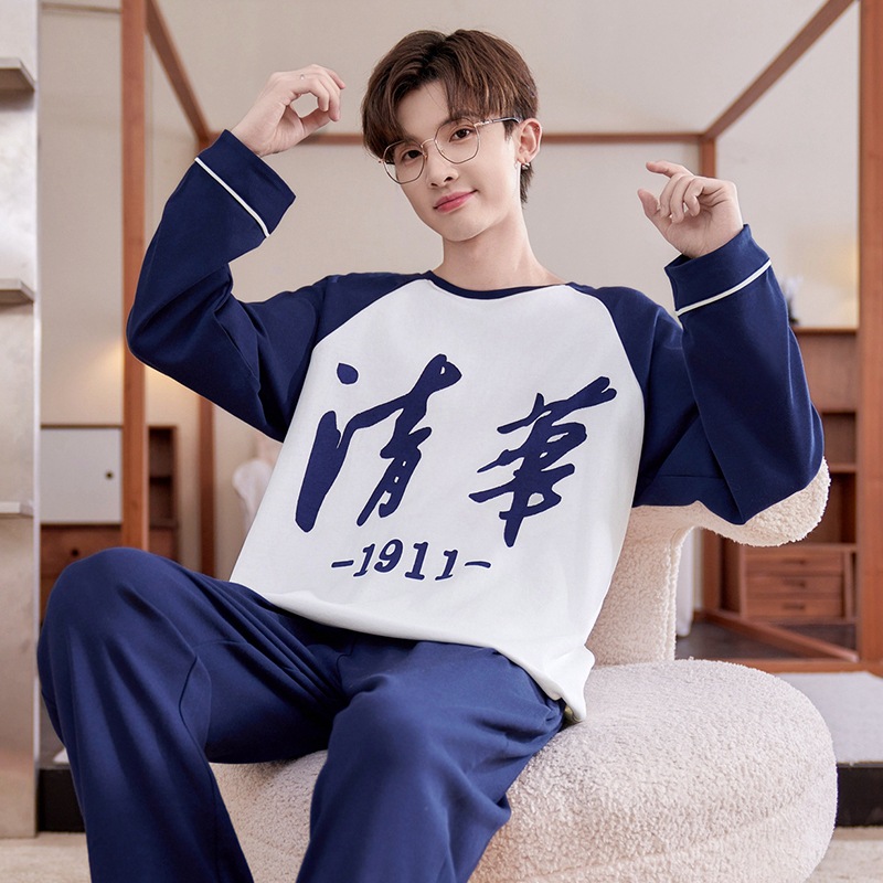 Главная страница > Мужская пижама весна и осень, хлопок тонкий с длинными рукавами, 2024 новый мальчик большой мальчик, подросток набор домашней одежды