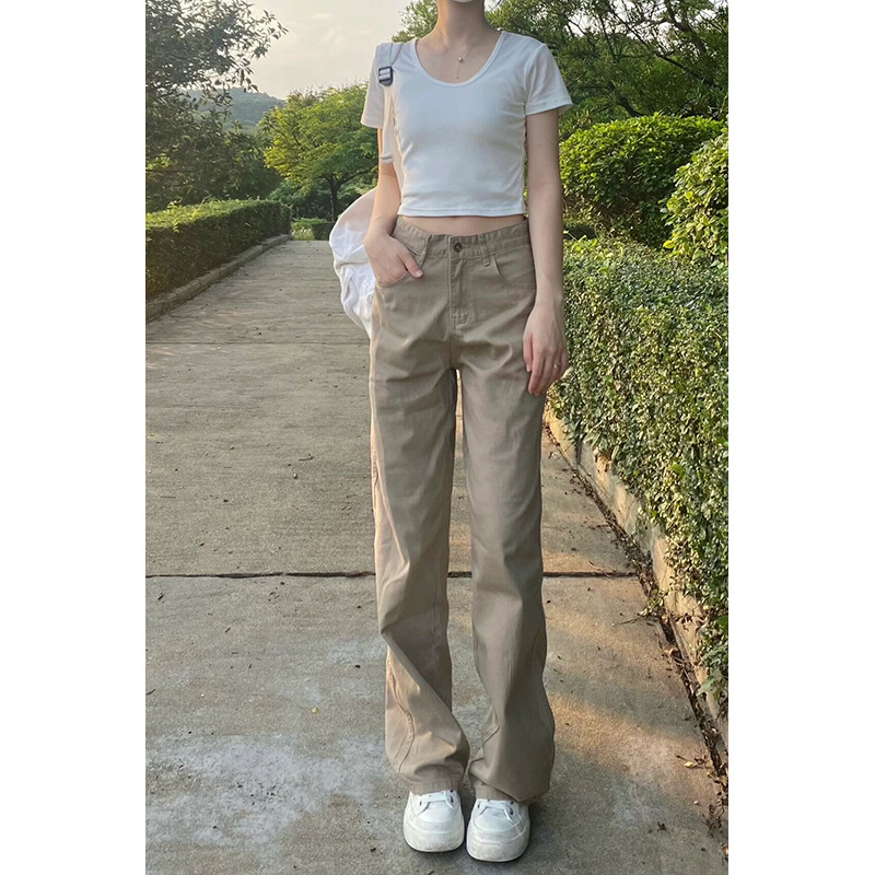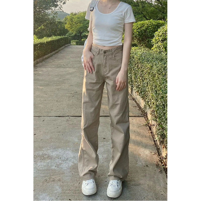 Главная страница > Хаки джинсы женские прилив ins2024 новые весна и осень с высокой талией прямой трусы свободные дикие повседневные широкие брюки