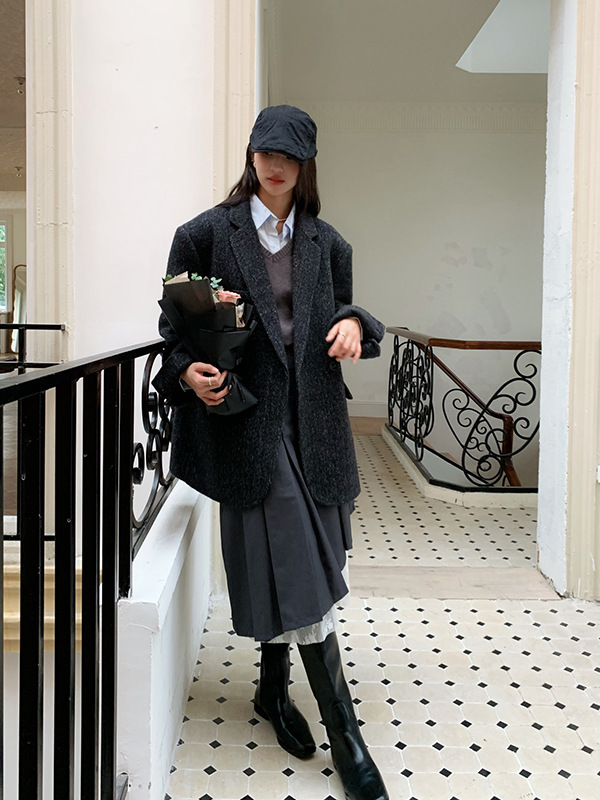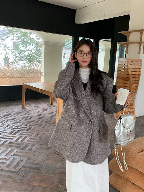 Главная страница > Женский двусторонний шерстяной костюм-пальто в корейском стиле, осень-зима 2025 года, премиум-класса, свободного кроя