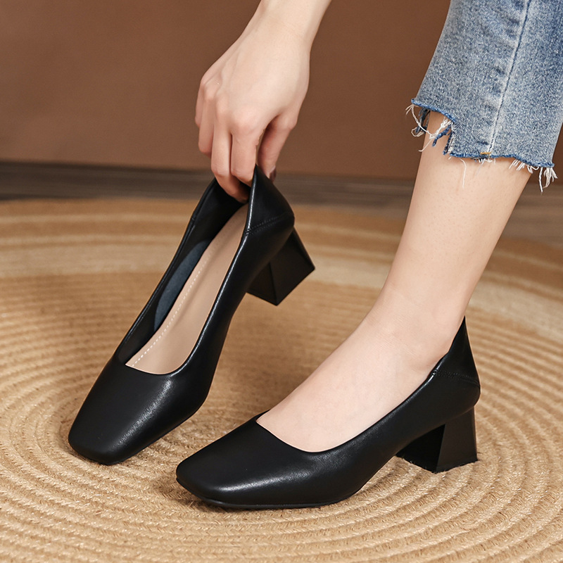 Главная страница > Женские туфли на плоской подошве из натуральной кожи, новинка 2025, весенняя профессиональная рабочая одежда, французский толстый каблук, средний каблук, квадратный носок, OL, рабочая женская обувь с мелким горлышком