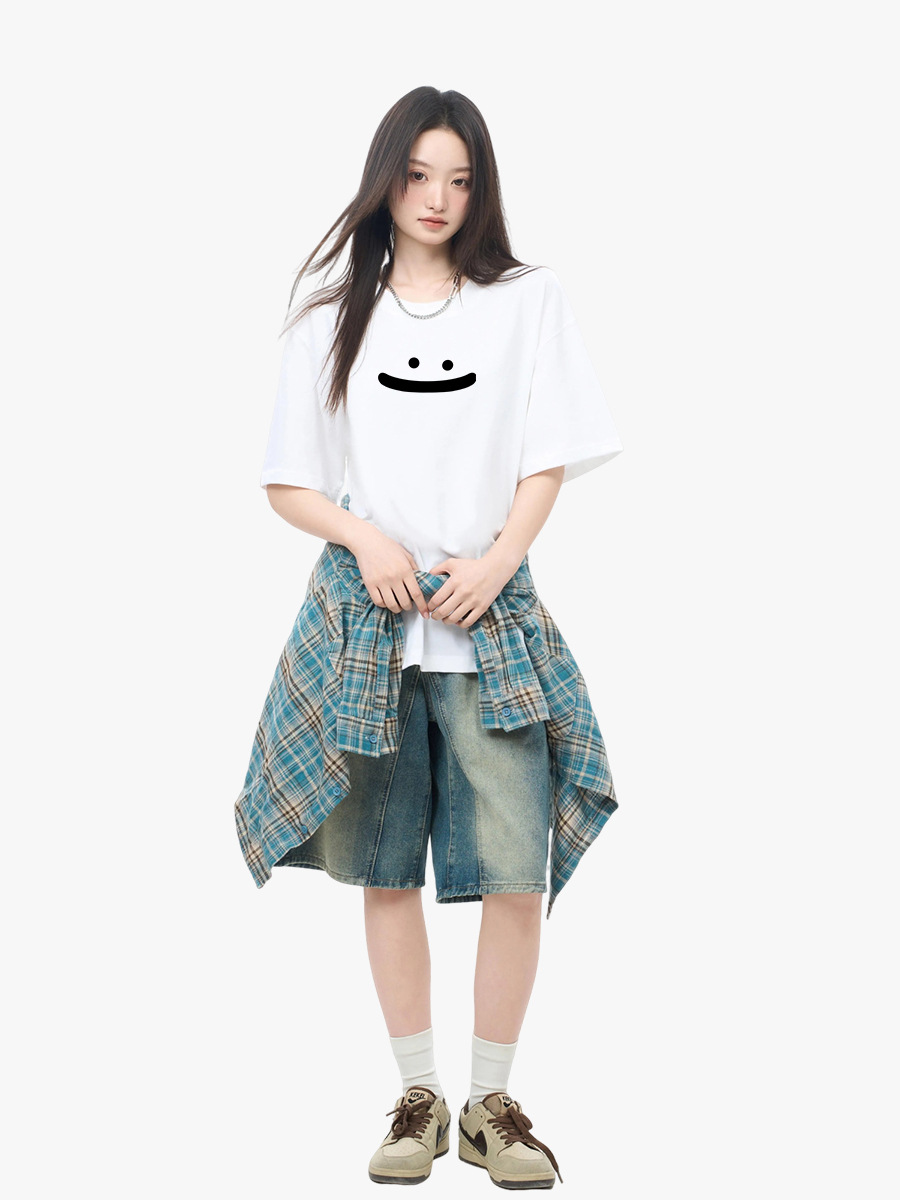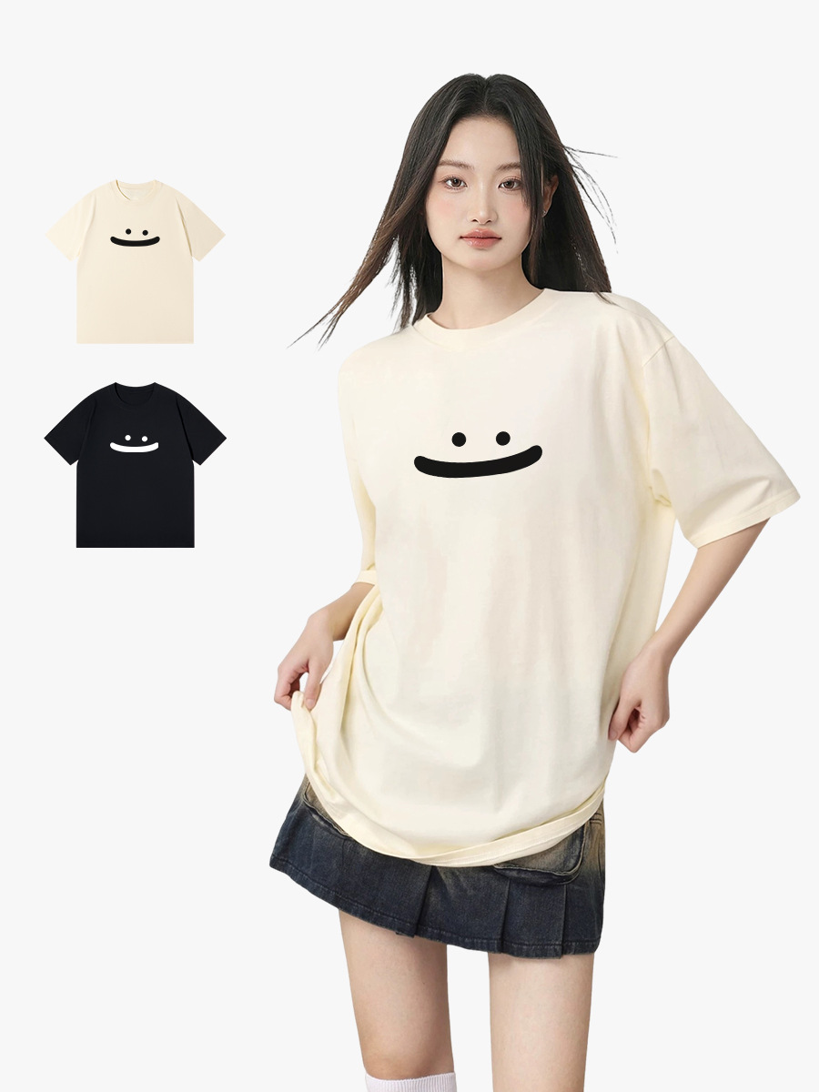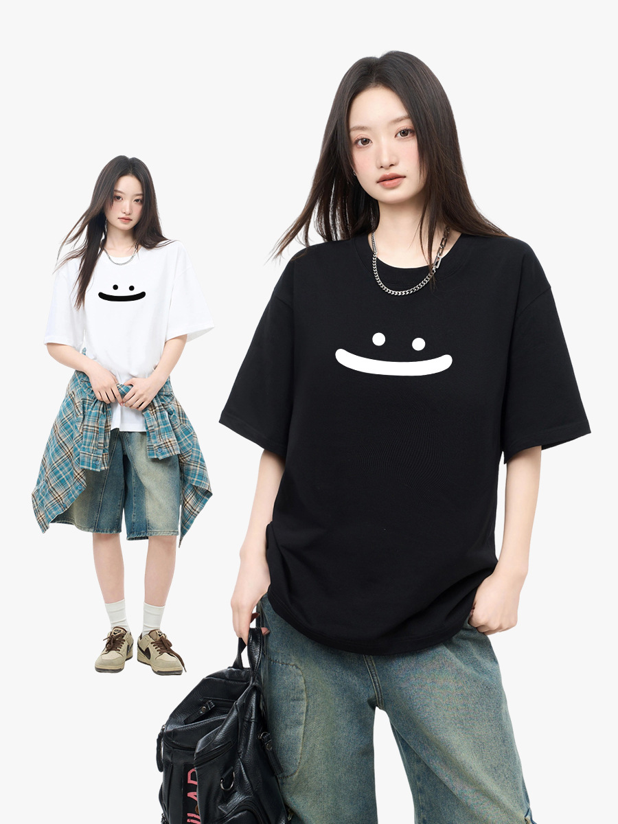 Главная страница > Новая хлопковая женская футболка с короткими рукавами летняя хлопчатобумажная футболка с полурукавом простой смайлик студенческая повседневная футболка
