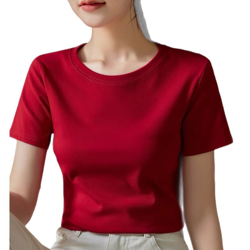 Главная страница > Винно-красная футболка с короткими рукавами весной и летом 2025 новая тонкая рубашка с круглым вырезом