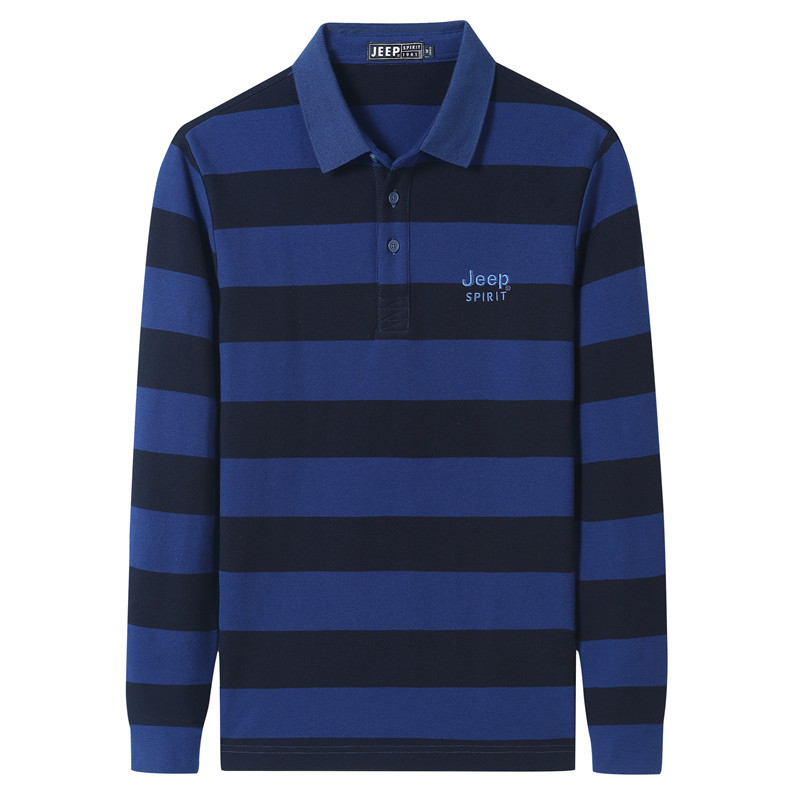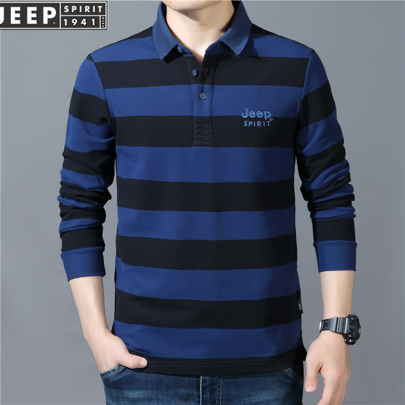 JP Мужская футболка с длинным рукавом Хлопковая Осенняя рубашка-поло в полоску Деловая свободная нижняя рубашка для отдыха PS5198