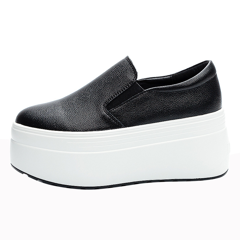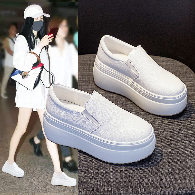 Главная страница > Белые женские туфли без шнуровки, новинка весны 202, женская обувь на толстой подошве, увеличивающая рост, повседневные универсальные лоферы на платформе для ленивых