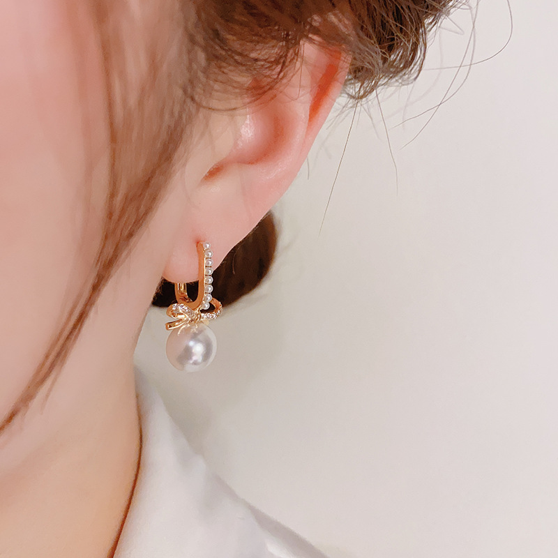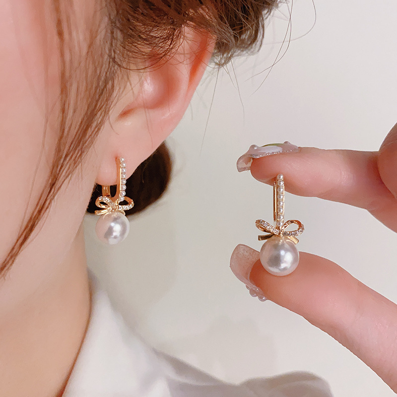 Французские минималистские винтажные жемчужные застежки-ухо женщины высокого уровня нишевые дизайнерские чувства модные дикие темпераментные серьги