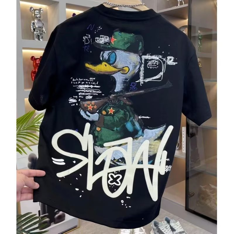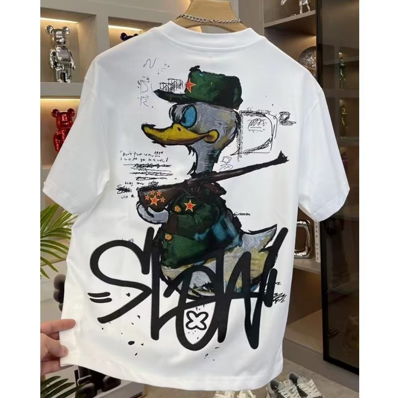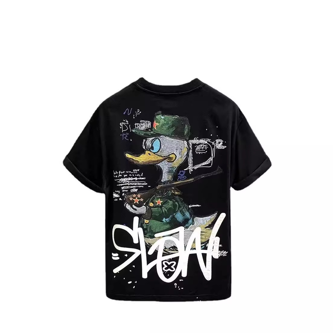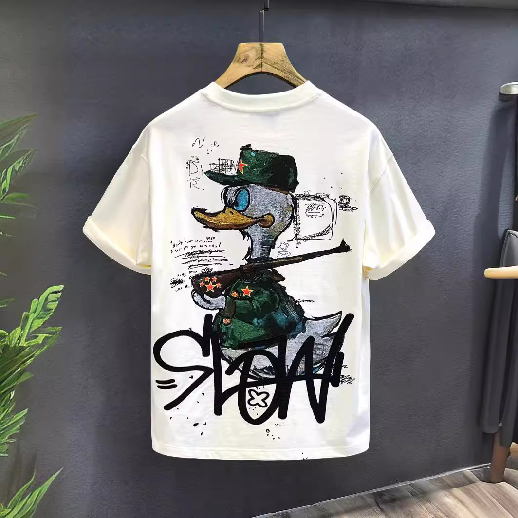 Главная страница > Футболка с короткими рукавами с американским мультяшным принтом в виде граффити, мужская летняя Модная брендовая Повседневная Свободная футболка для пар с рукавами до локтя