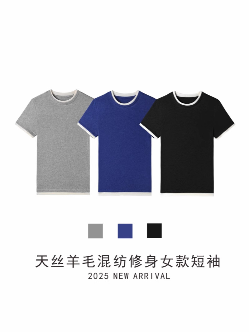 Главная страница > [Короткий T] Мирано шерстяной Telsi смешанный круглый воротник сшитый трикотаж фундамент стройный пуловер нижняя рубашка женская короткая T