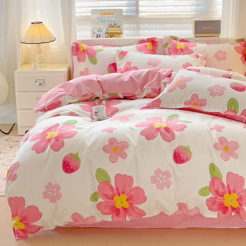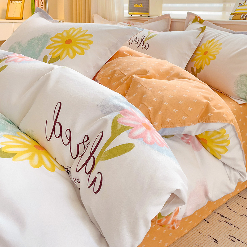 Свежий хлопок шлифовальный набор из четырех частей Простой мультяшный простыни стеганое одеяло студенческое общежитие набор из трех частей подарков оптом 4