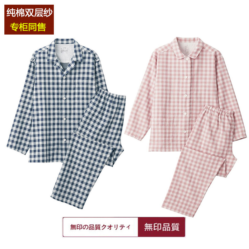 Пижама из чистого хлопка в японском стиле, бесшовная, из двухслойной марли, для мужчин и женщин, подходит для ношения на улице, комплект для отдыха с длинными рукавами и длинными брюками.