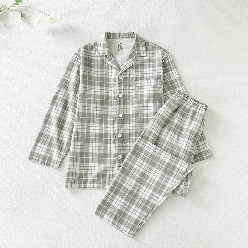 Главная страница > Пижама из чистого хлопка в японском стиле, бесшовная, из двухслойной марли, для мужчин и женщин, подходит для ношения на улице, комплект для отдыха с длинными рукавами и длинными брюками.