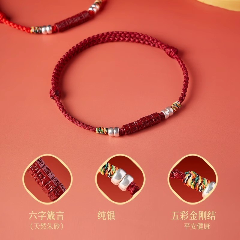 Натуральный киноварный браслет из шести символов Правда из чистого серебра