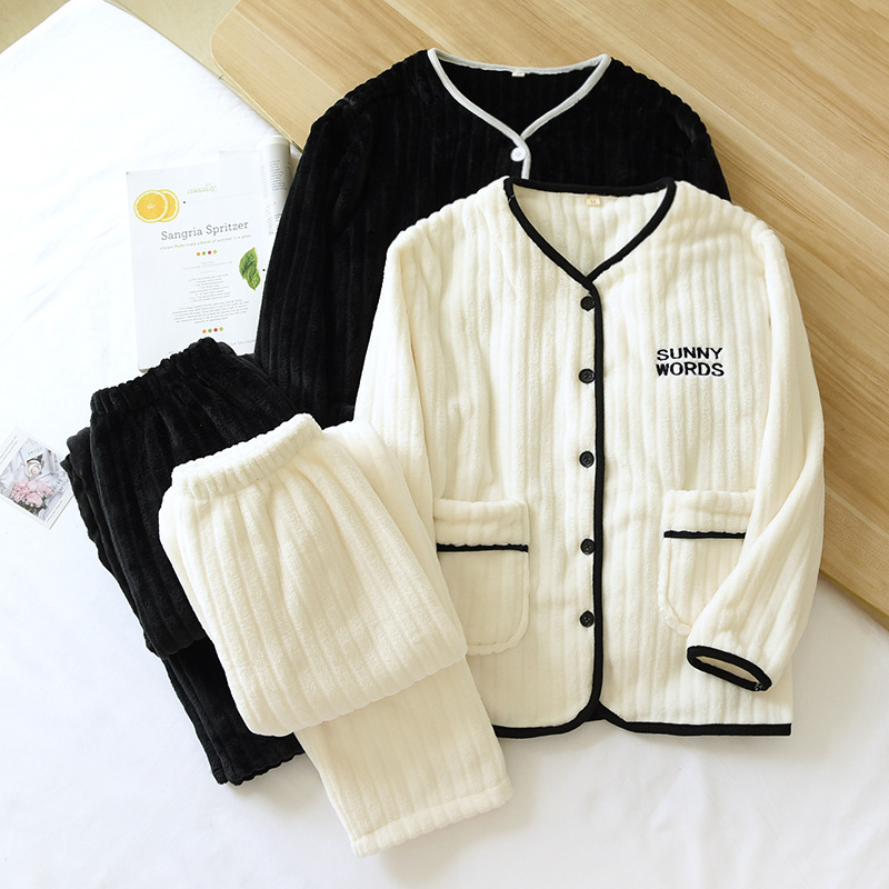 Главная страница > Парная Пижама, женская зимняя фланелевая утолщенная флисовая подкладка, брюки с длинными рукавами, домашняя одежда, свободный мужской костюм из кораллового флиса