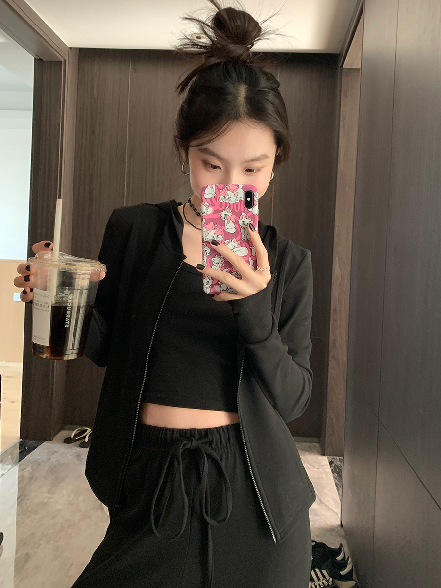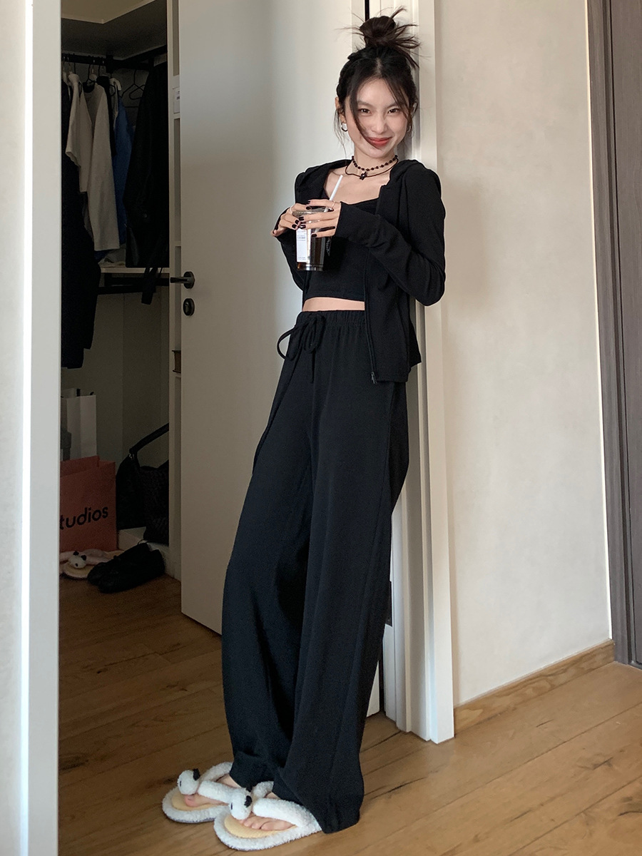 Главная страница > Спортивный костюм для женщин 2025: осенний комплект из однотонного кардигана, жакета и брюк на бретелях, повседневный корейский стиль, три предмета