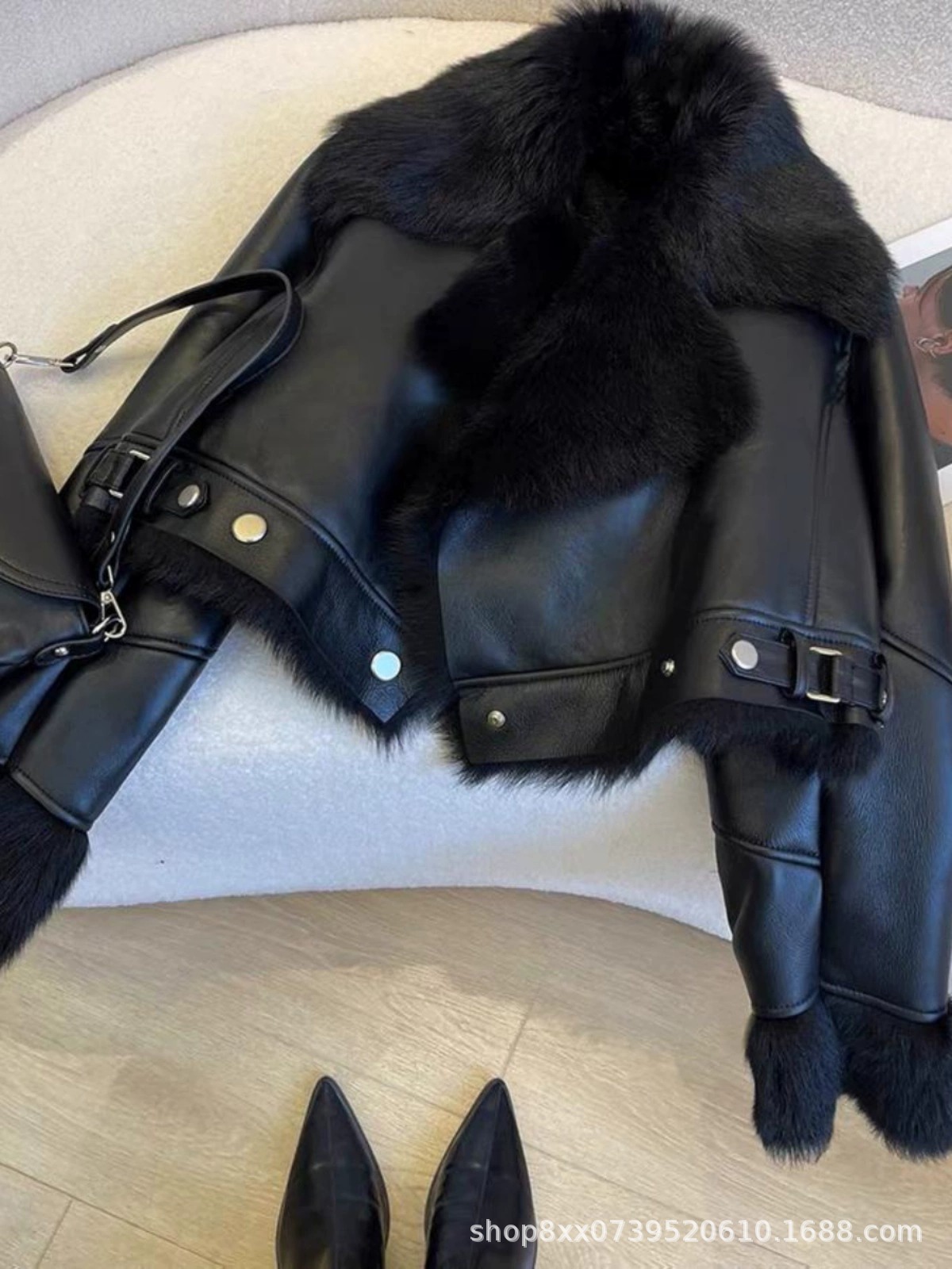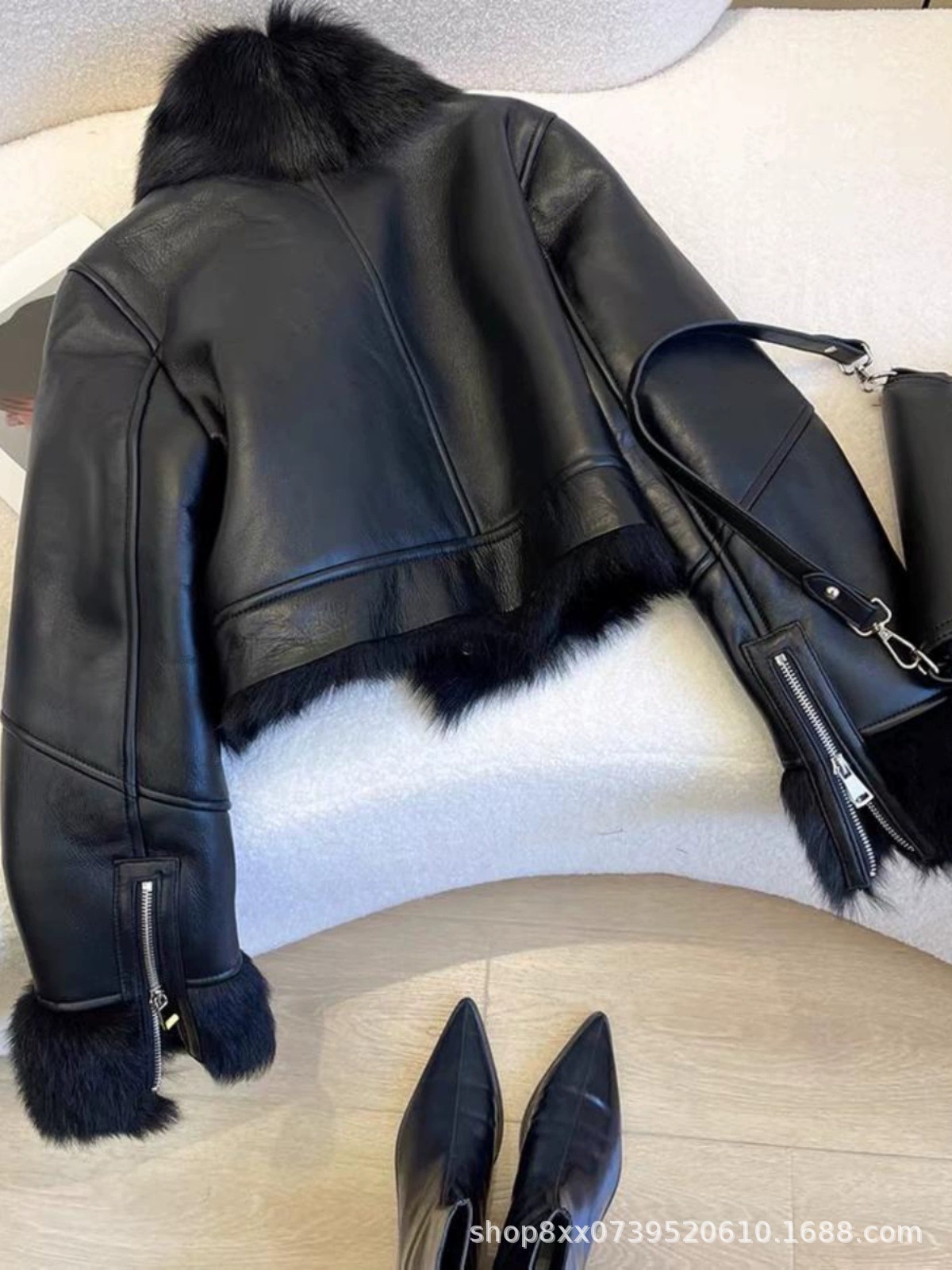 Главная страница > Черное кожаное пальто из шерсти женский короткий 2024 зимний новый толстый теплый автомобиль куртка топ
