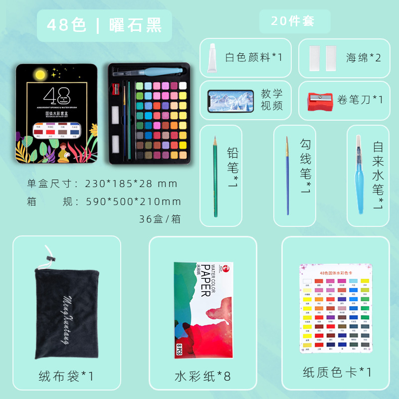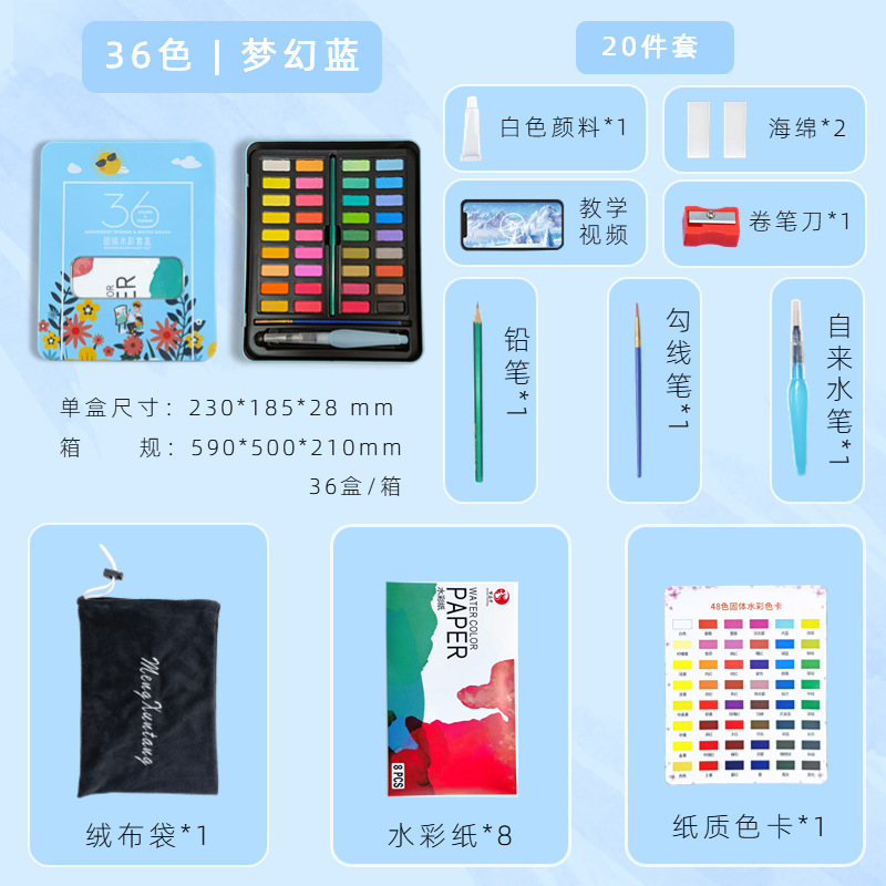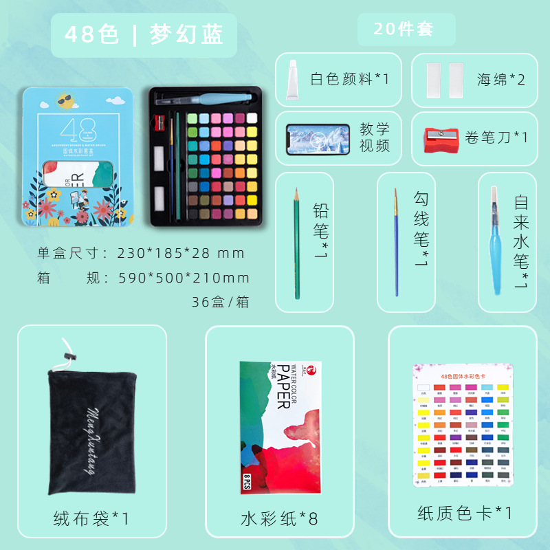 Главная страница > Трансграничный твердый акварельный пигмент костюм железная коробка товары для творчества детская живопись краска порошок торт оптом полный набор