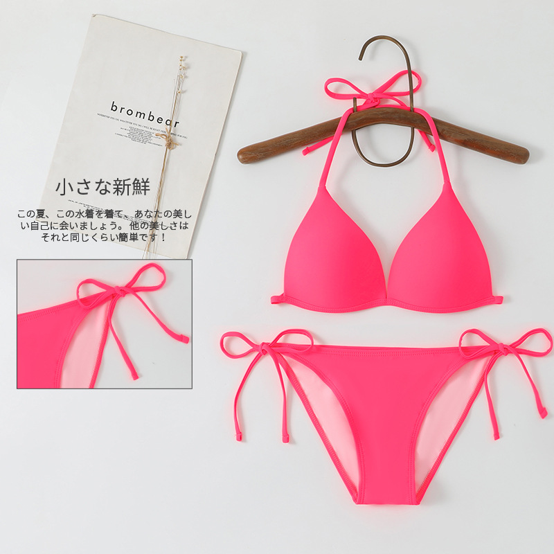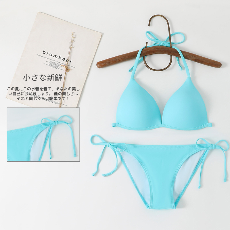 2025 европейский и американский купальник бикини женский фиксированный нагрудный коврик базовый сплошной цвет bikini трехточечный сексуальный сплит купальник