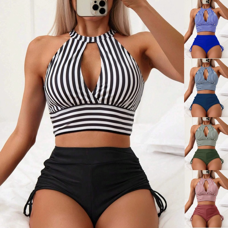 Главная страница > Новый европейско-американский разноцветный купальник-бикини из двух частей с эффектом люкс, с вырезами, полосатый комплект для плавания, Amazon.