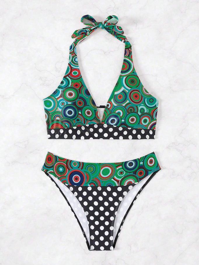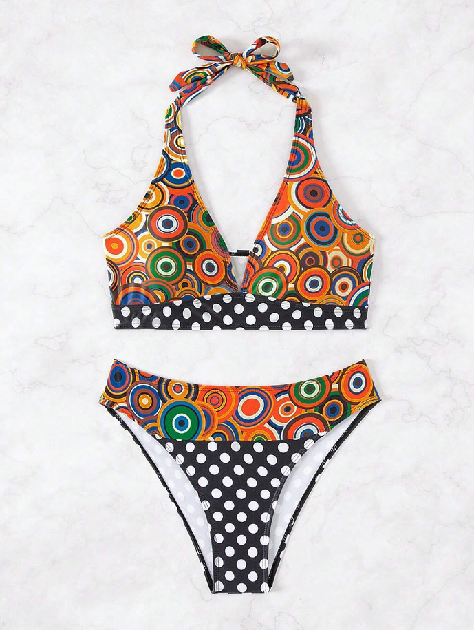 Главная страница > Трансграничный 2025 Европа и США внешняя торговля новый цифровой принт шнуровка Amazon бикини сплит-купальник с высокой талией