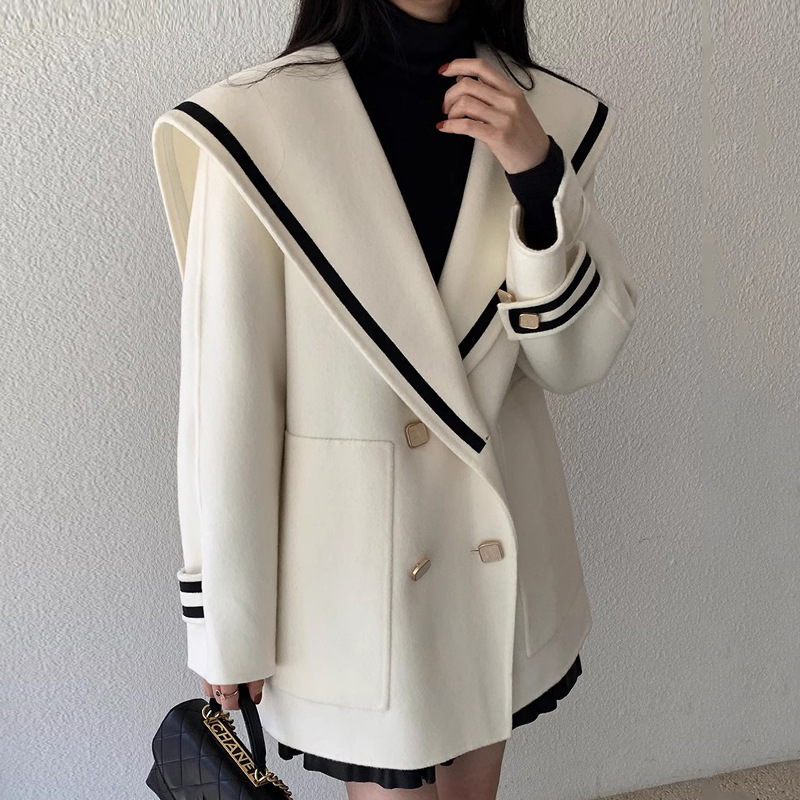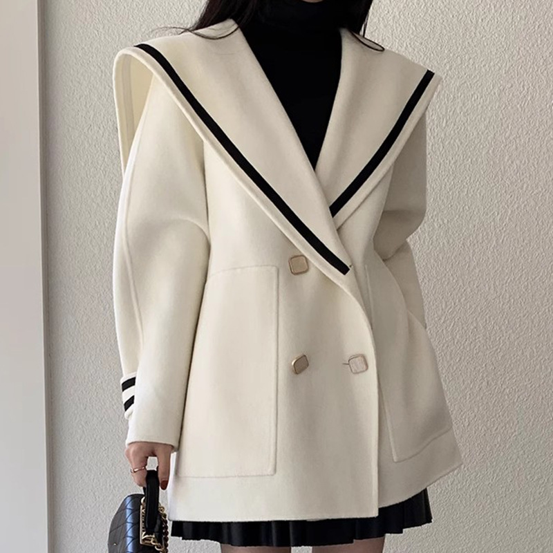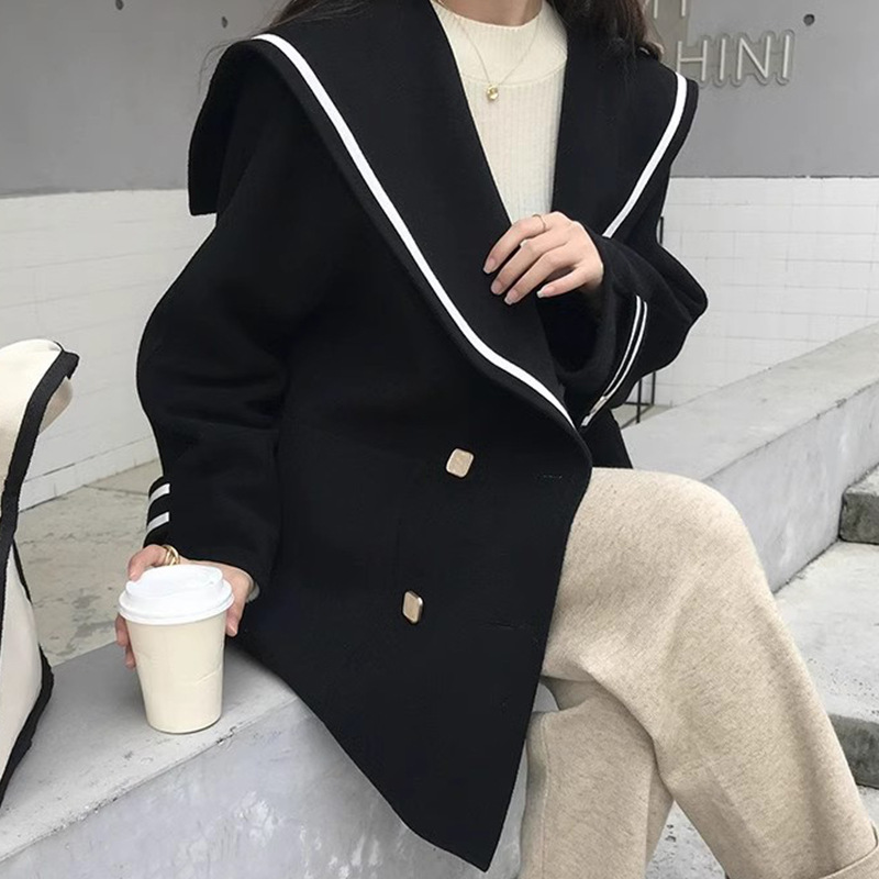 Главная страница > Корейский чик осень-зима французское ретро-минус воротник военно-морского флота двубортный свободный повседневный имитационный кашемировый шерстяной куртка женский