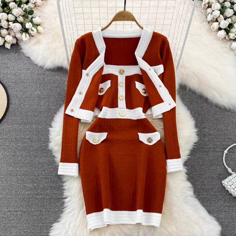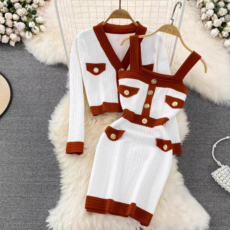 Главная страница > Модный костюм женская леди темперамент V-образный контрастный цвет короткий трикотажный пиджак из двух частей