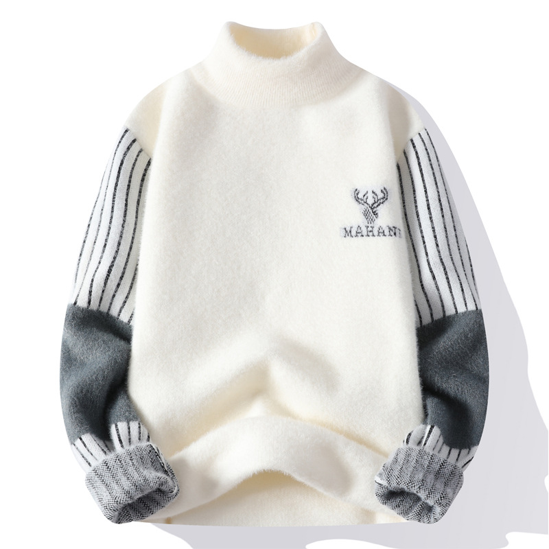 Главная страница > Мужской свитер из норковой шерсти, утепленный для зимы 2025, мужской теплый свитер с воротником-стойкой, модный трикотаж для подростков.