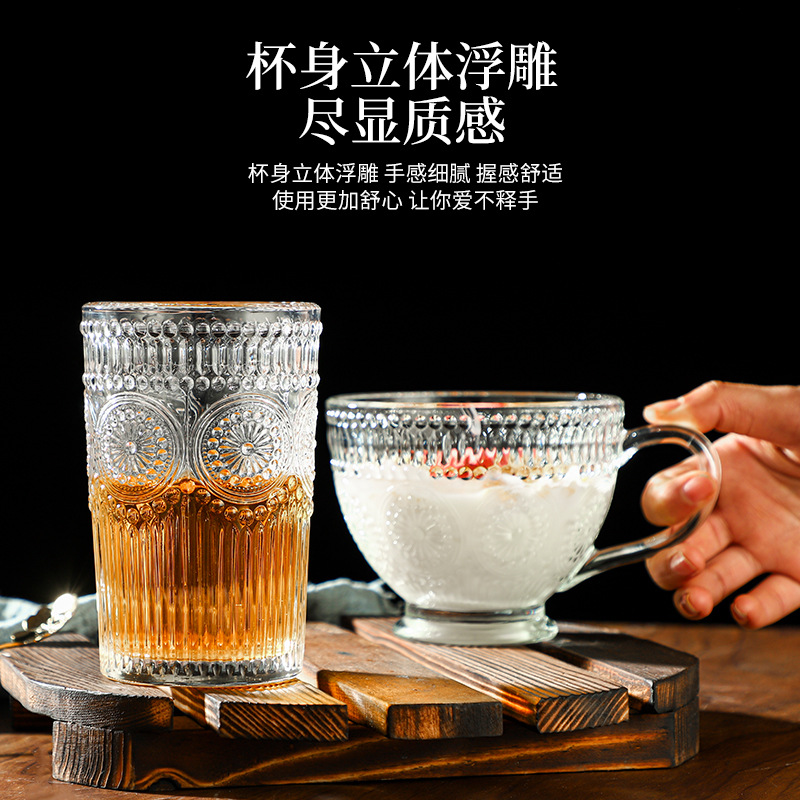 Главная страница > Скандинавский стиль Винтаж Креативный тисненый стиль Подсолнечник Стеклянная чашка для воды Кофейная чашка Чашка для завтрака Сопровождающая Подарочная чашка для молока