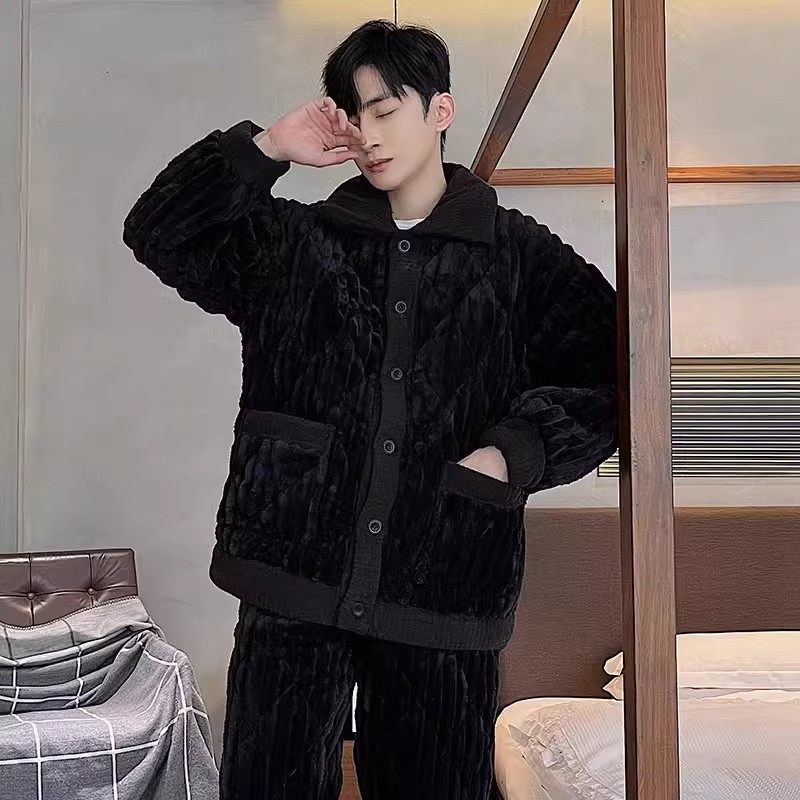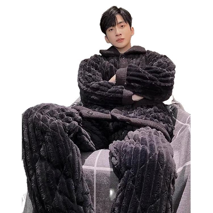 Главная страница > Мужская стеганая пижама, зимний утепленный фланелевый комплект из двух предметов с флисовой подкладкой, теплая домашняя одежда, дропшиппинг с Taobao.