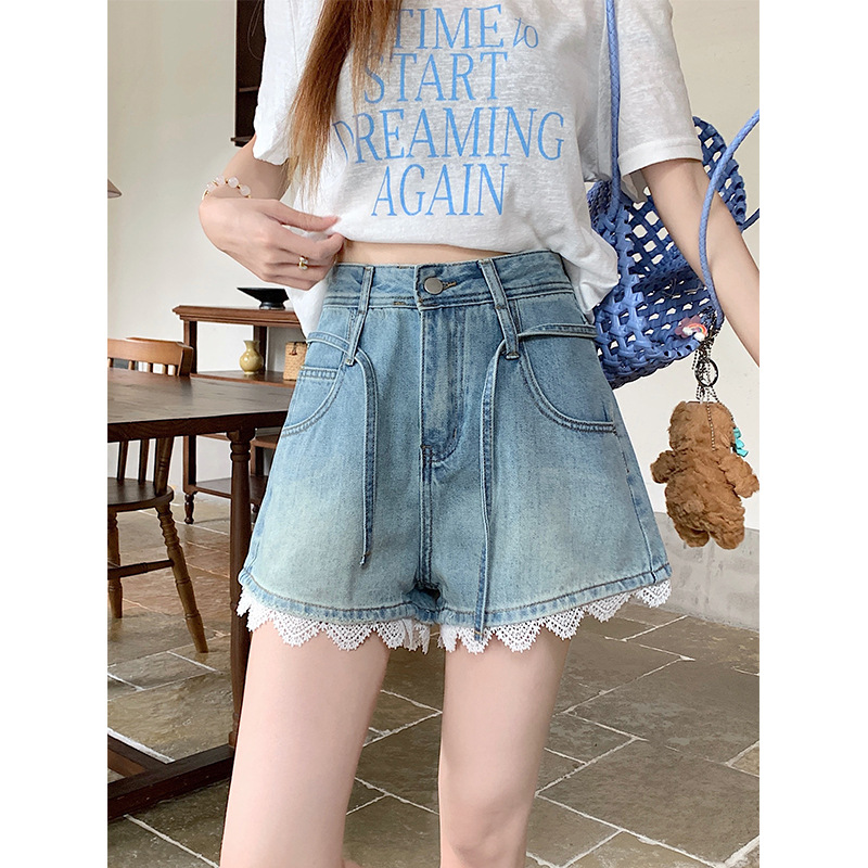 Главная страница > Белые джинсовые шорты больших размеров для женщин, лето 2025, новые милые и пикантные кружевные шорты трапециевидной формы для девочек, модные