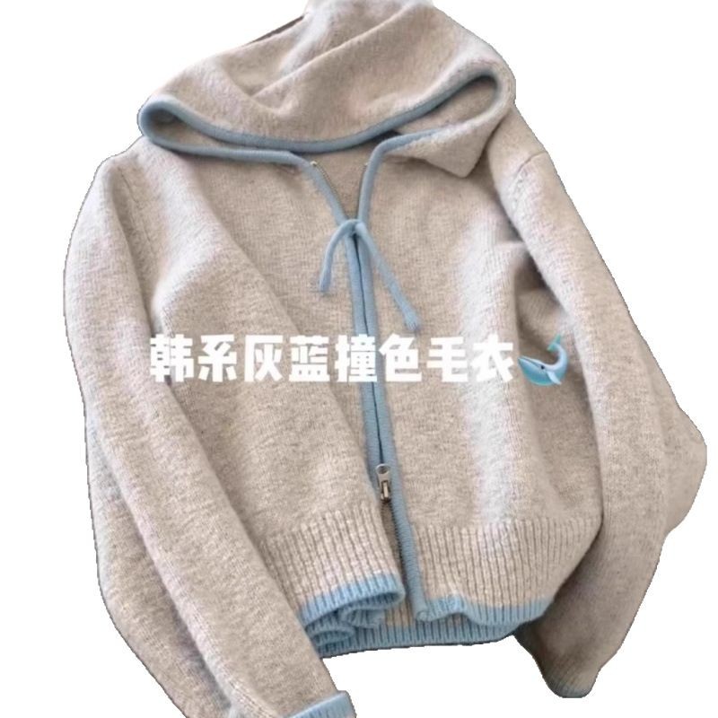Главная страница > Женский вязаный кардиган KANING с капюшоном, мягкий, с цветовыми блоками, осенний новый стиль 2025, контрастная молния, повседневный, мягкий топ