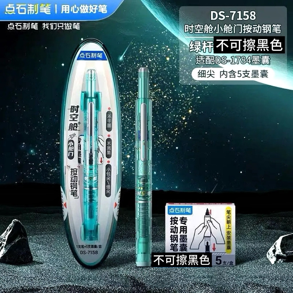 Зеленый стержень-7158 прессовая ручка [неискрываемый черный] 1 ручка + 5 пакетиков с чернилами