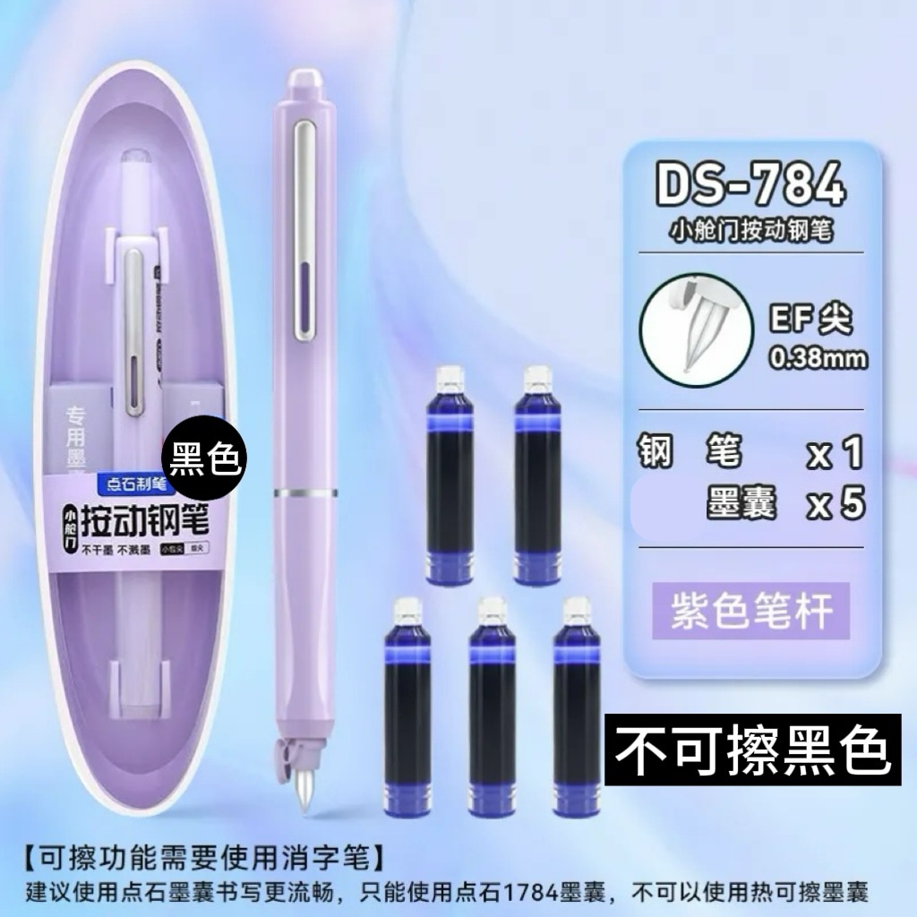 Фиолетовый стержень-784 Пресс-ручка [неискладывающийся черный] 1 ручка + 5 мешков с чернилами