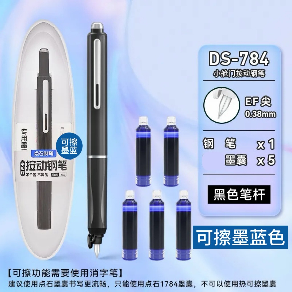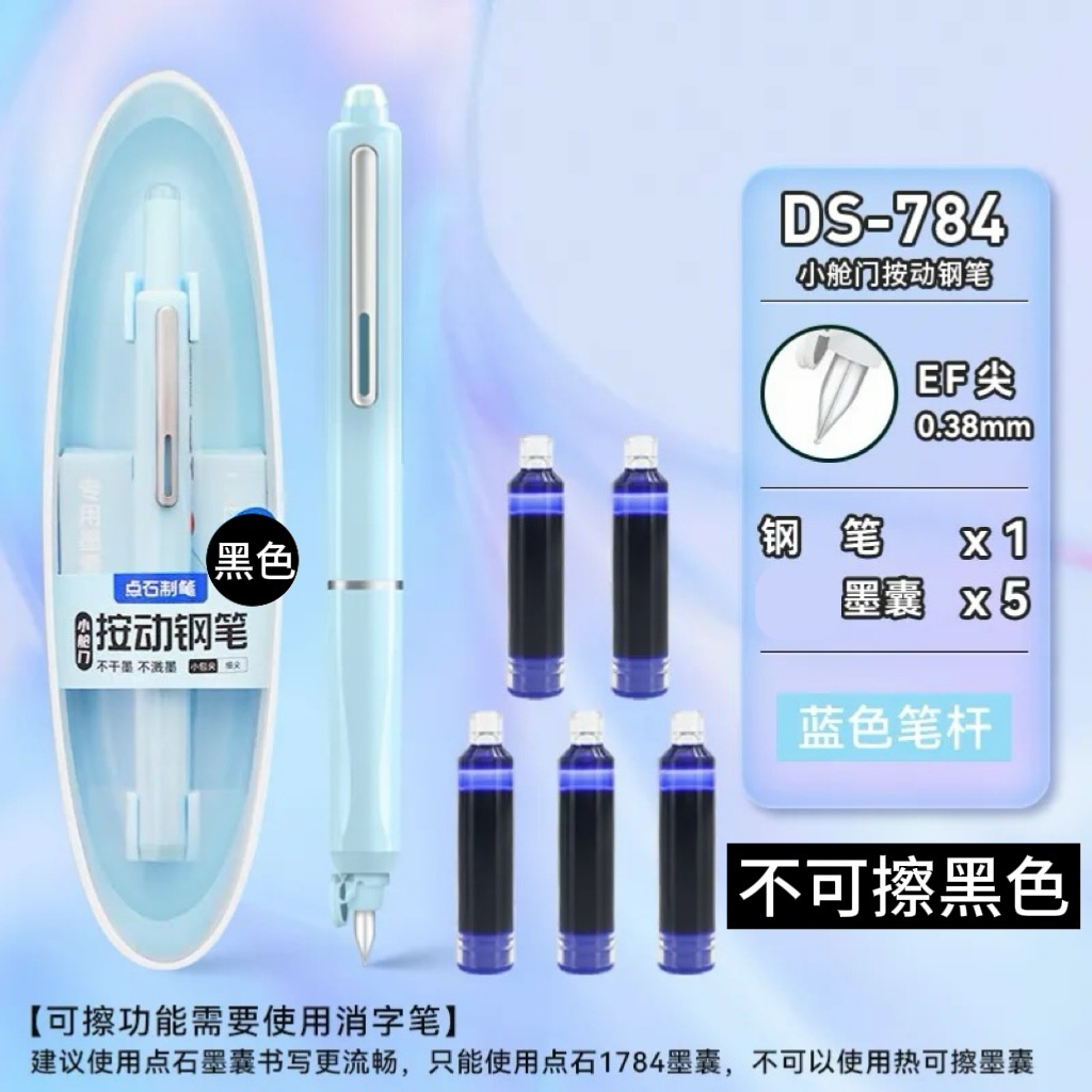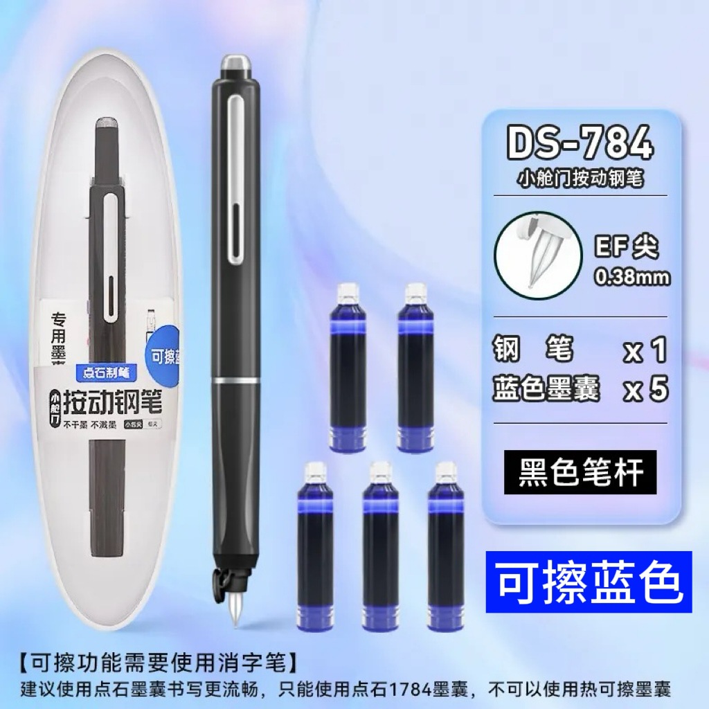 Черный стержень-784 Пресс-ручка [Стираемые чернила синего цвета] 1 ручка + 5 мешков с чернилами