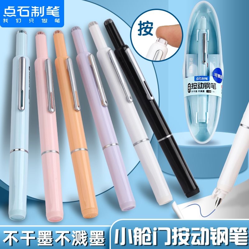 Темно-синий стержень-7158 пресс-ручка [неискрывающийся черный] 1 ручка + 5 пакетиков с чернилами