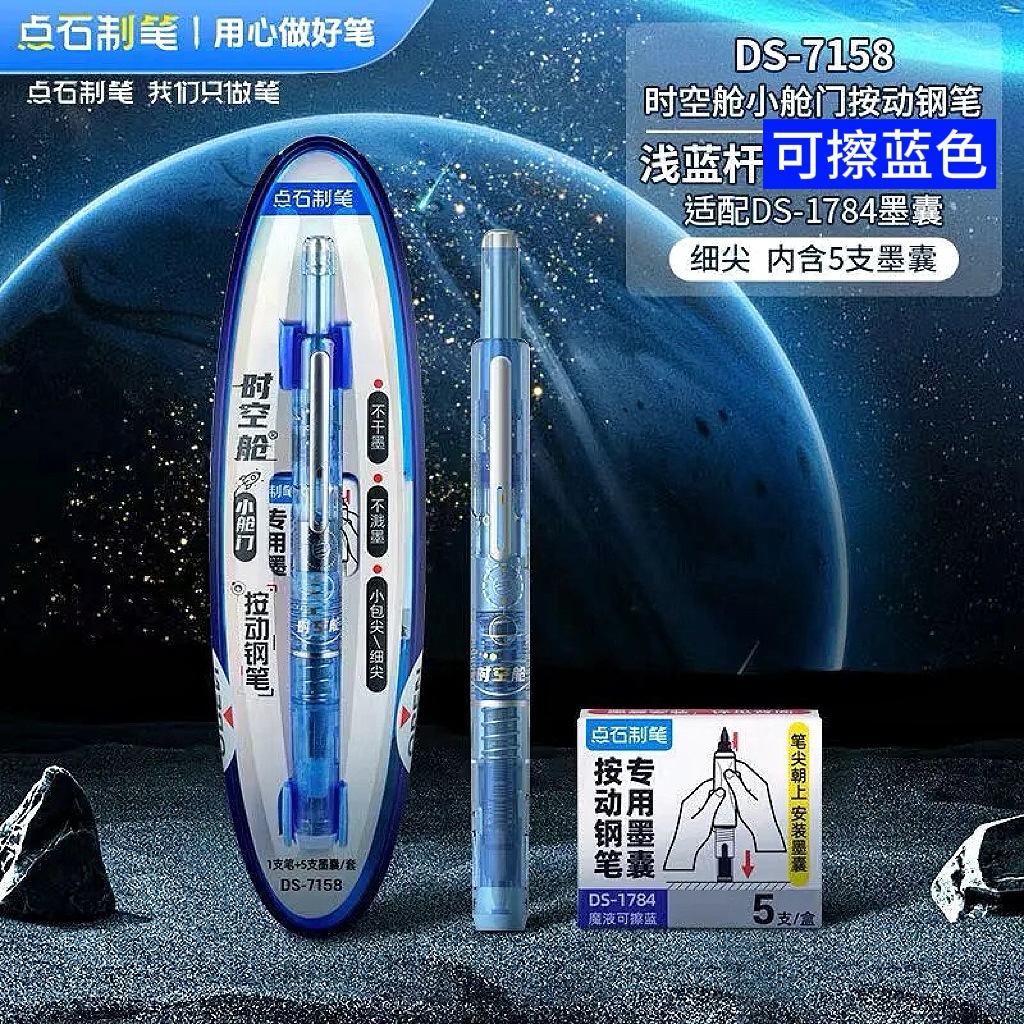 Голубой стержень-7158 прессовая ручка [выраживаемый синий] 1 ручка + 5 мешков с чернилами