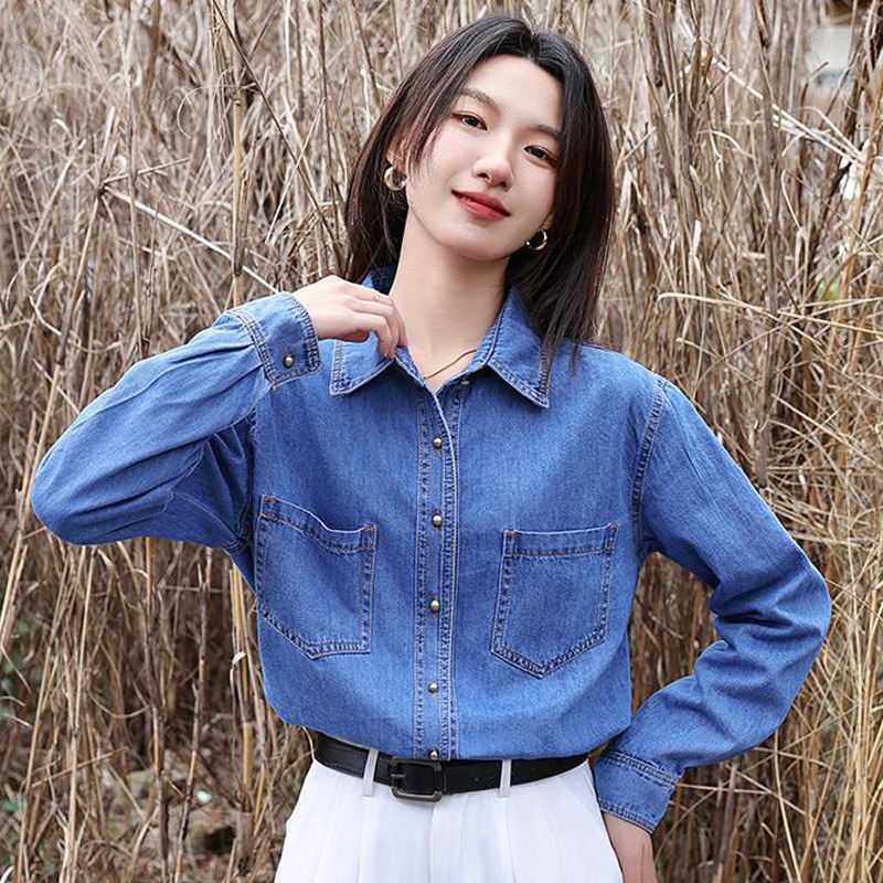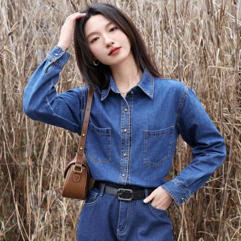 Главная страница > Джинсовая рубашка в стиле ретро в гонконгском стиле, женское весенне-осеннее пальто, внутренняя одежда, нижняя рубашка, новинка весны 2024 года