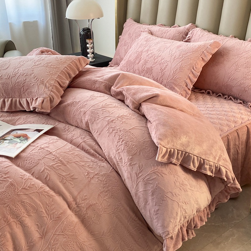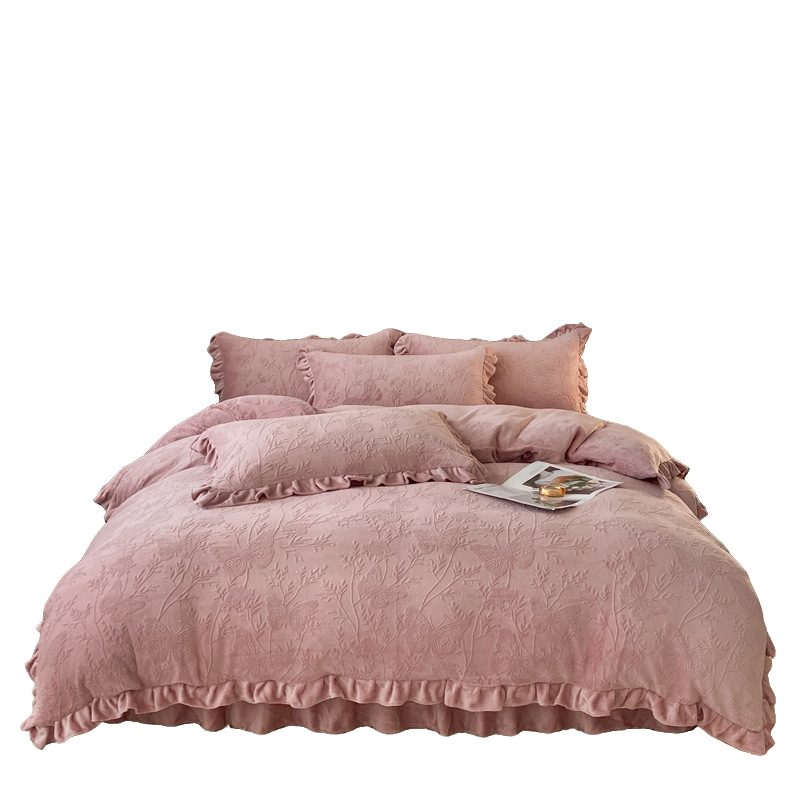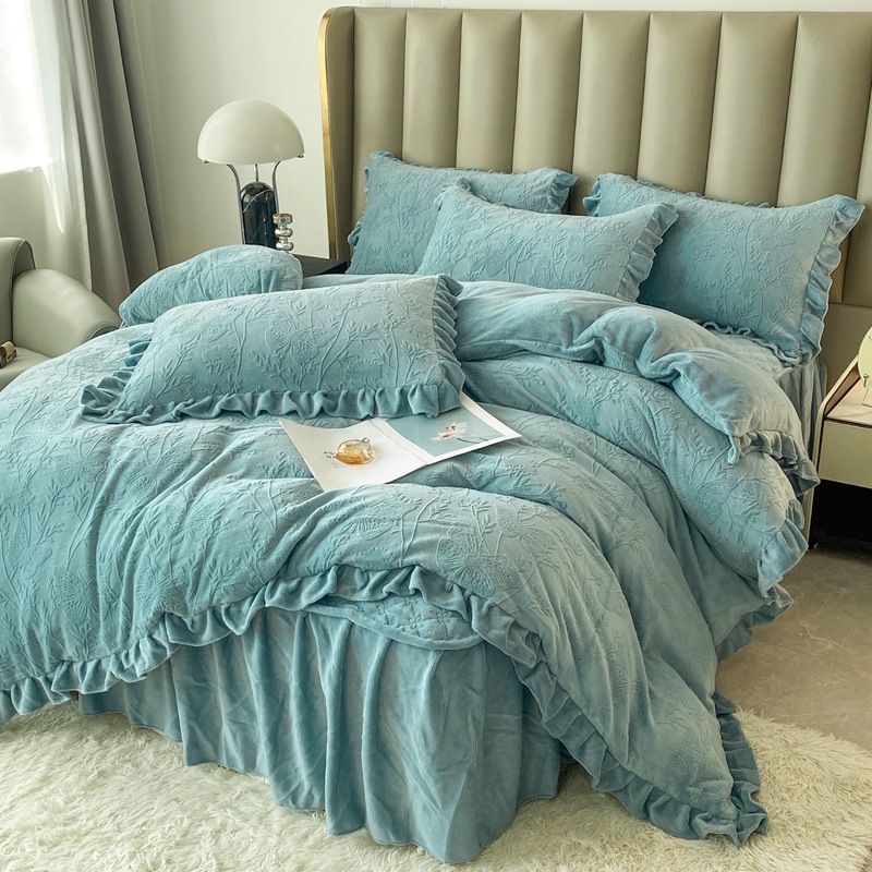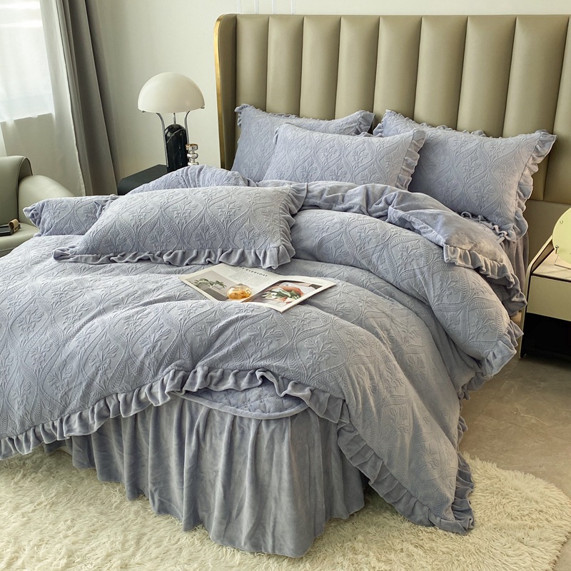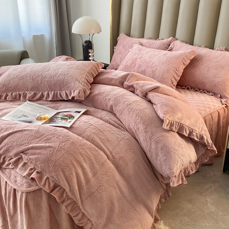 Главная страница > Зимнее молоко бархатное покрытие из четырех частей одеяло юбка корейская версия утолщенная теплая коралловая фланелевая простыня