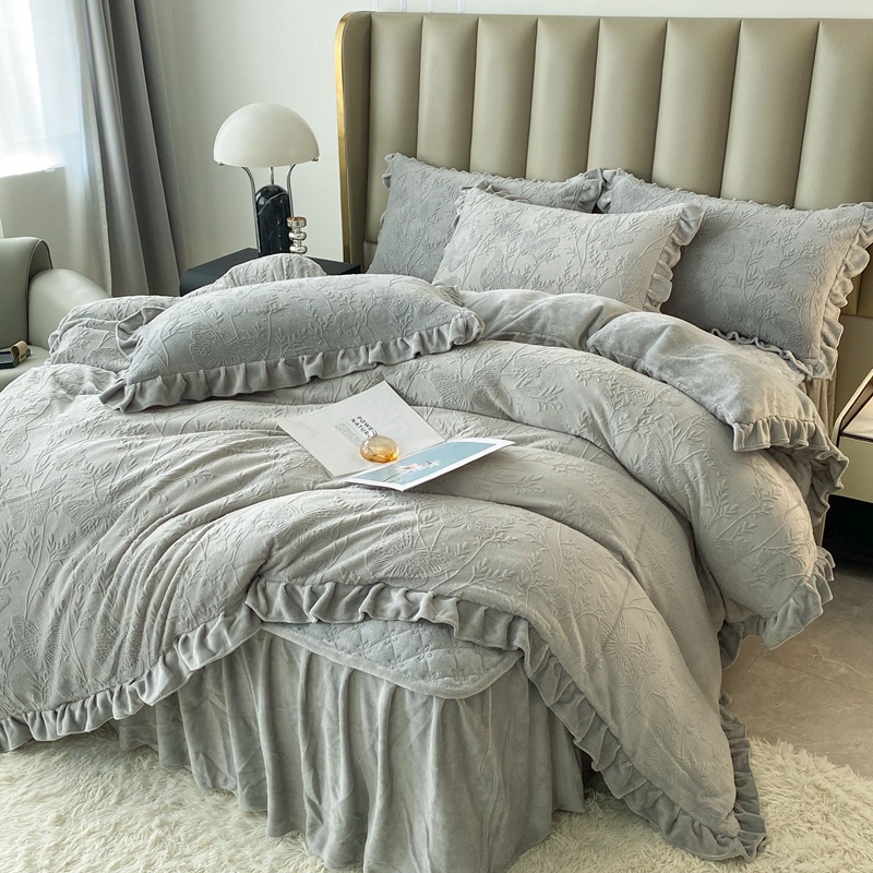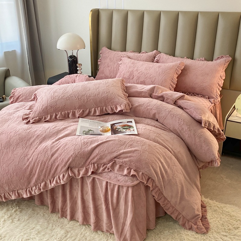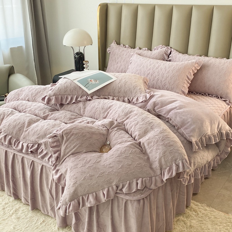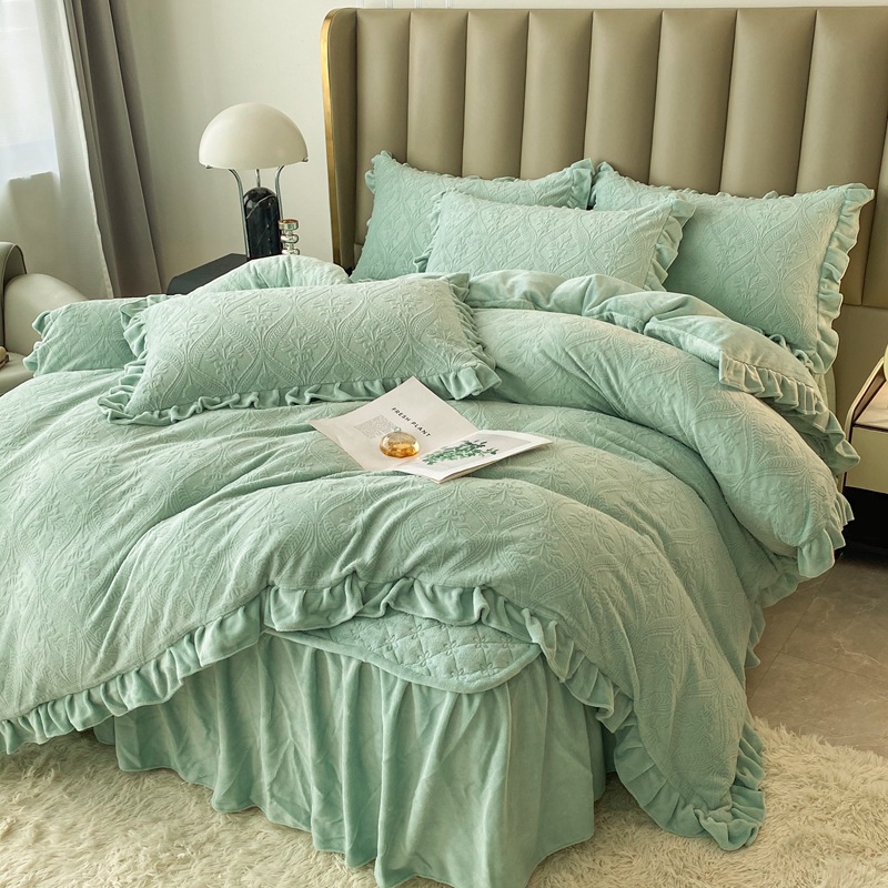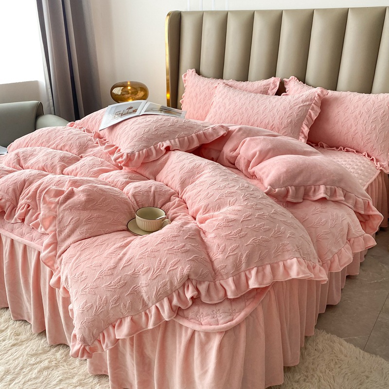 Главная страница > Зимнее молоко бархатное покрытие из четырех частей одеяло юбка корейская версия утолщенная теплая коралловая фланелевая простыня