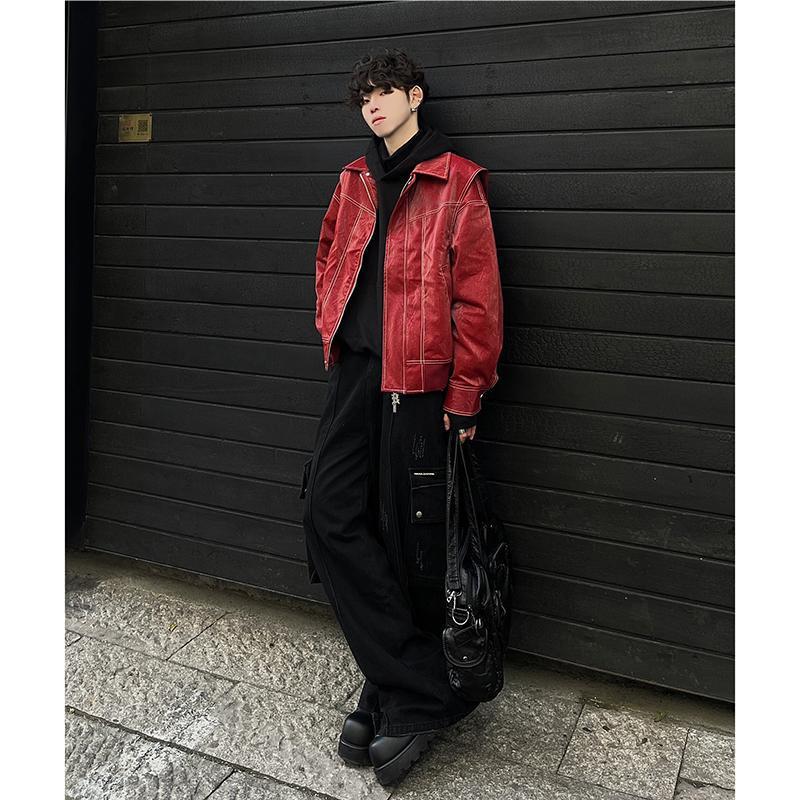 Главная страница > Красный поддельный двухслойный короткий пиджак мужской весенний и осенний дизайн ощущение широкого плеча мотоциклетный костюм cleanfit красивый пиджак