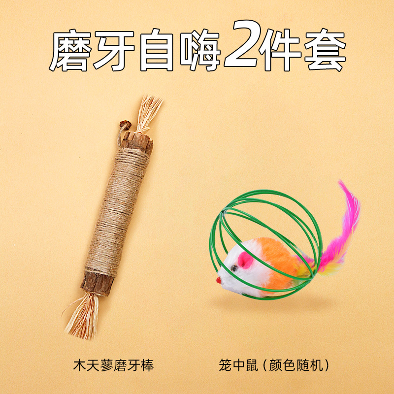 [Набор из 3 предметов] Рыба из мешковины + деревянная многоугольная палочка для коренных зубов + мышь в клетке