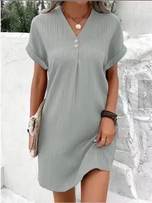 Главная страница > Трансграничная Европейская и американская женская одежда 2023 Новый Amazon Бестселлер Однотонный пуловер с V-образным вырезом Повседневное платье на пуговицах в наличии