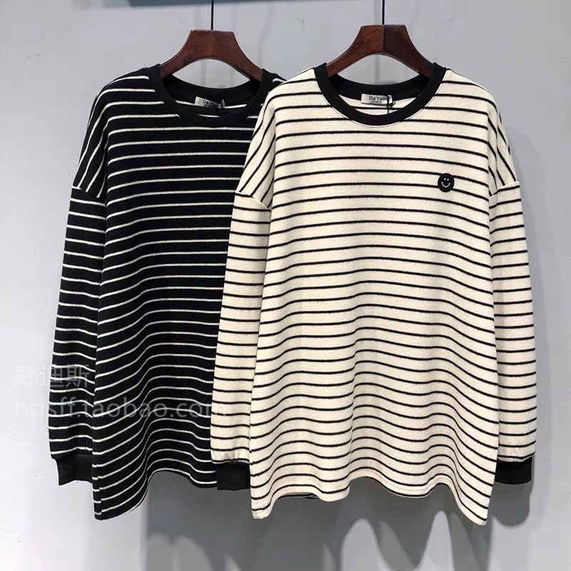 Главная страница > 24 осенние и зимние корейские новые свободные полосатые смайлики волосатые футболки с длинными рукавами женские дикие топы