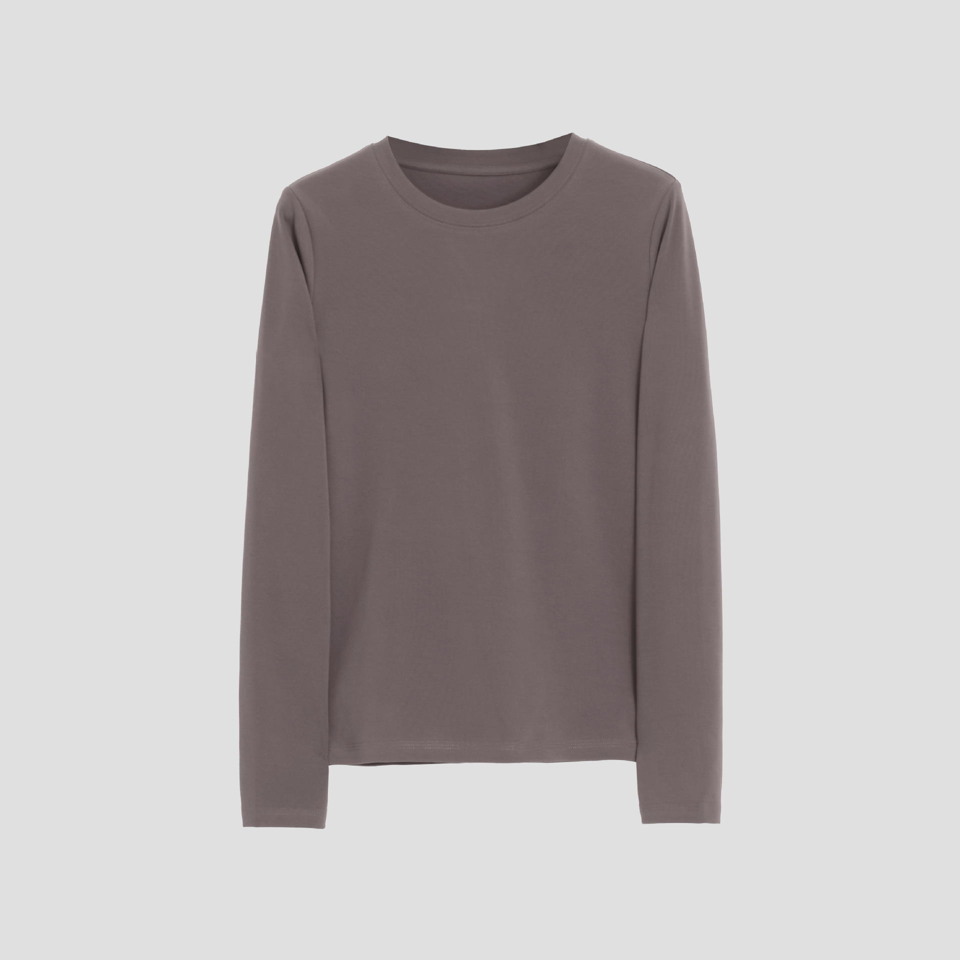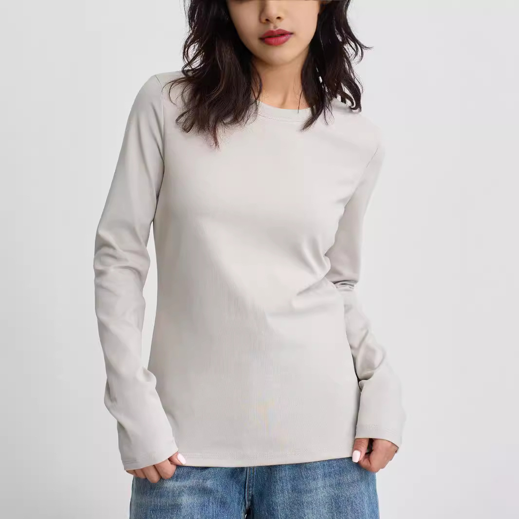 Главная страница > Женская хлопковая футболка с круглым вырезом и внутренним низом, 2024, однотонная, облегающая, удобная, универсальная, с длинными рукавами, рабочая одежда