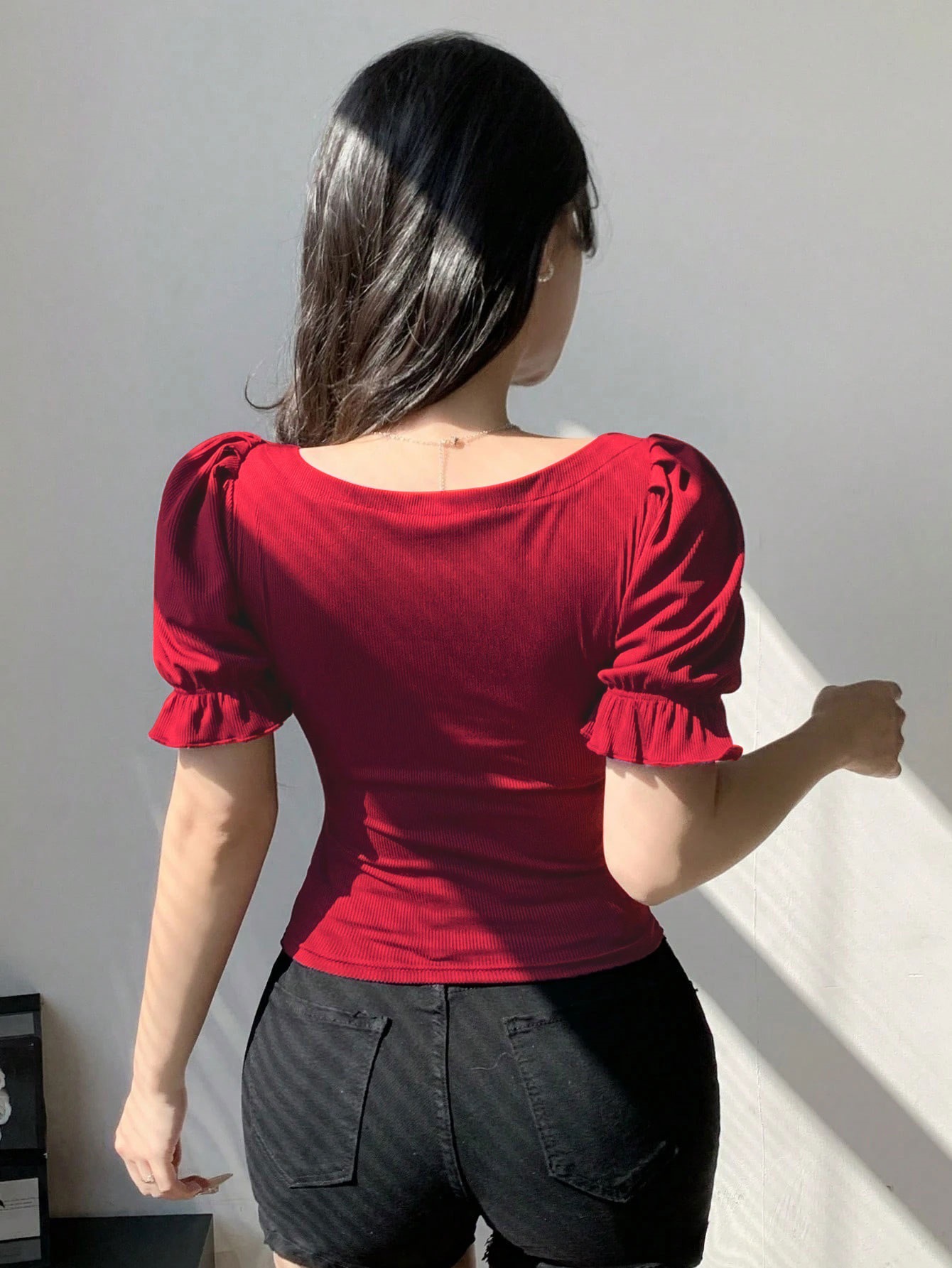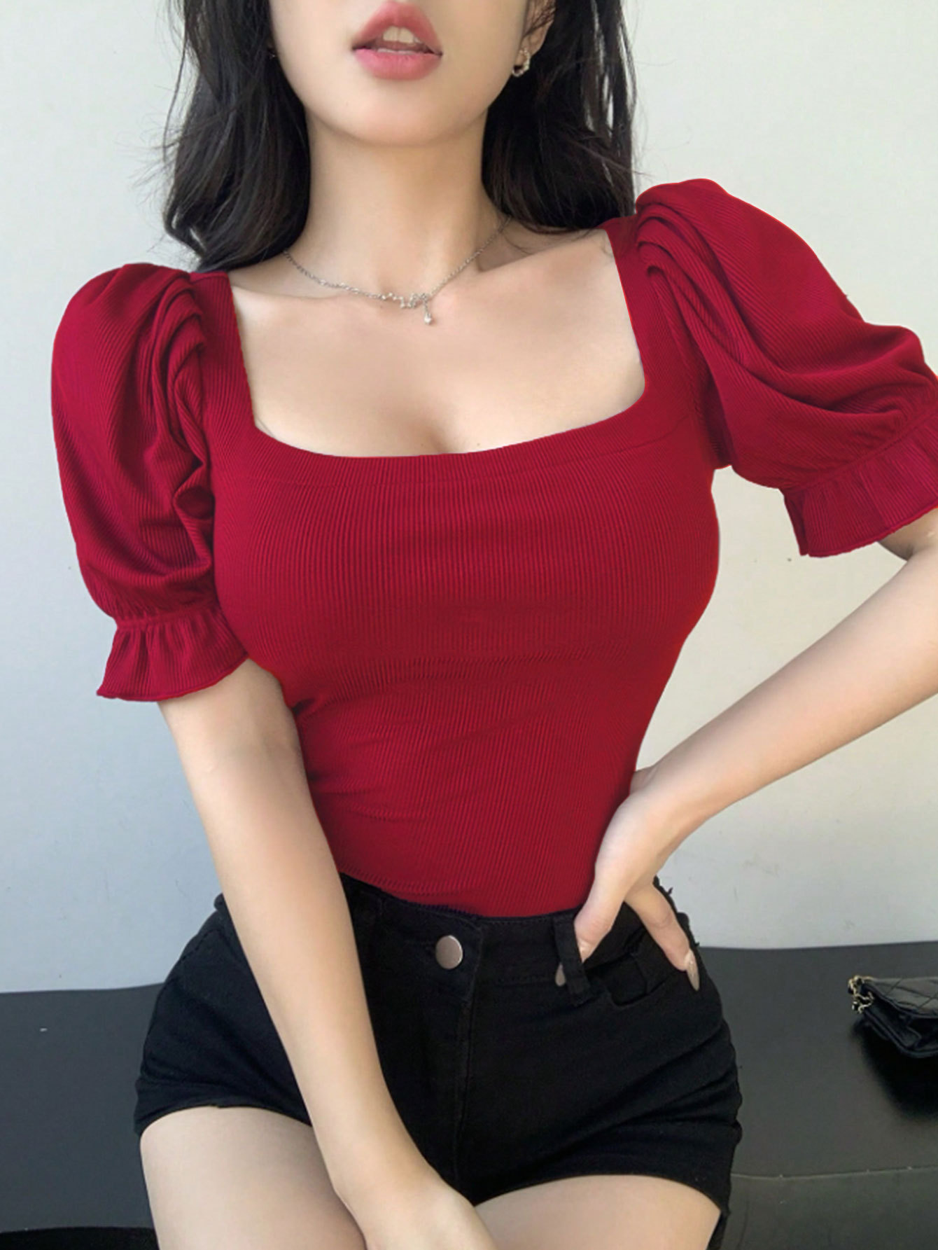 Главная страница > Французская винтажная рубашка с квадратным воротником с пузырьками рукава футболка женская короткая рукава тонкая, сладкий и пряный стиль дизайн Летний новый топ с половиной рукава