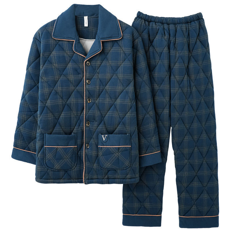 Зимняя пижама мужская утолщена и теплая три слоя хлопка тепло и комфортно осень и зима мужская одежда кардиган костюм оптовая продажа