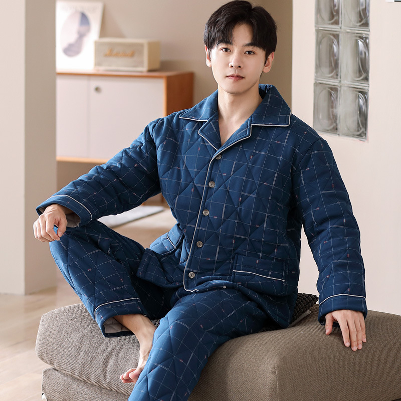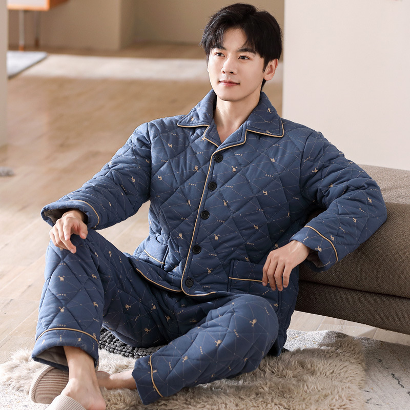 Главная страница > Зимняя пижама мужская утолщена и теплая три слоя хлопка тепло и комфортно осень и зима мужская одежда кардиган костюм оптовая продажа